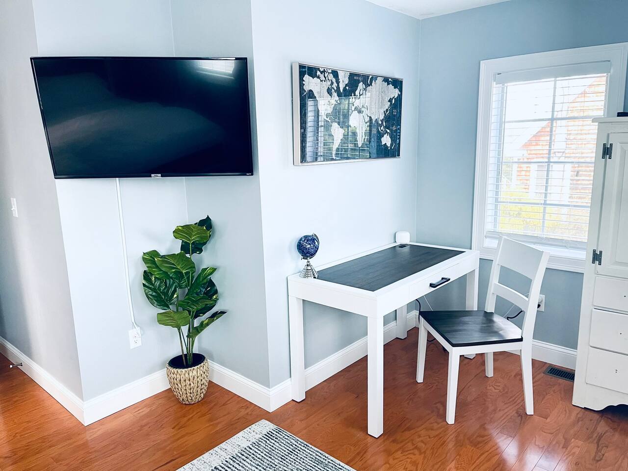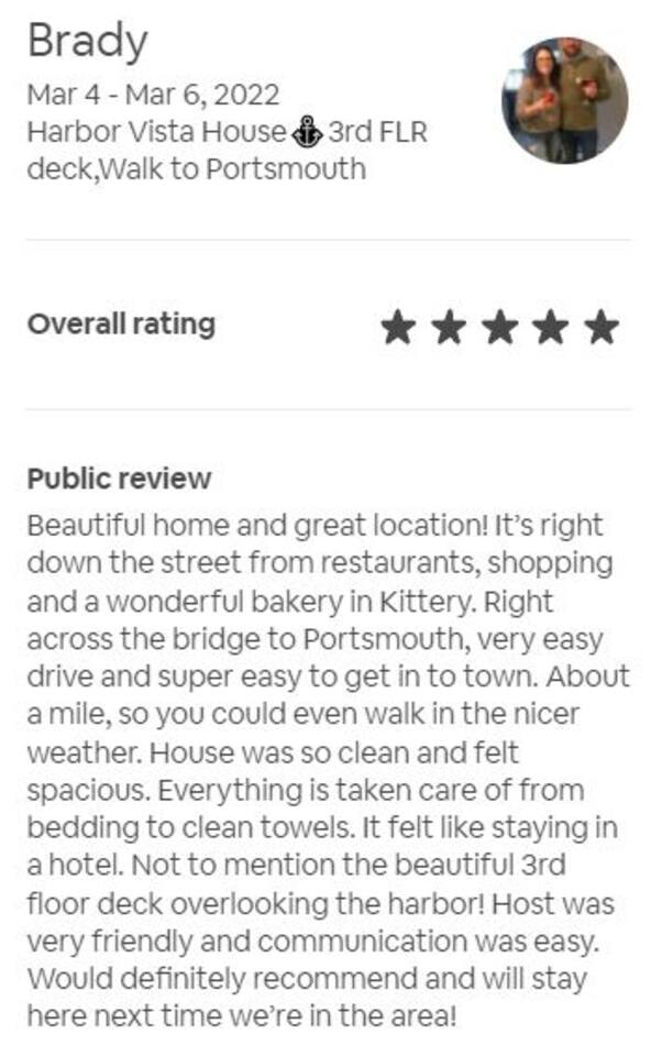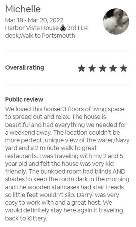 Perfect for guests seeking a quiet, relaxing vacation, this home is thoughtfully equipped with modern amenities and comfortable furnishings. Enjoy a fully stocked kitchen, a cozy living room, and a 3rd-floor deck ideal for unwinding 🌅. Book now for a stress-free stay filled with great food, shopping, and coastal charm. Welcome to our beautiful 3-bedroom, 3-bathroom home in Kittery, Maine—an ideal retreat for couples and families looking for peace, comfort, and convenience. Nestled in a quiet neighborhood yet just steps from Kittery Foreside, the home offers the perfect balance of tranquility and accessibility. Inside, you’ll find a spacious living room with plush seating and a large 📺 flat-screen TV—perfect after a day of sightseeing or outlet shopping. 🍳 Kitchen & Dining - The kitchen is fully equipped with: - Stainless steel appliances - Granite countertops - Complete cookware and utensils The dining area features a large table, ideal for 🍽️ family meals or 🎲 game nights. 🛏️ Bedrooms & Bathrooms🌇 - Primary bedroom: King bed, flat-screen TV, en-suite bathroom, and a private 3rd-floor balcony - Second bedroom: King-sized bed - Third bedroom: Bunk bed with trundle—perfect for kids or extra guests The second and third bedrooms share a spacious bathroom with a tub/shower combo 🚿. 🌞 Outdoor Space The expansive 3rd-floor deck offers ample seating for dining or relaxing with a glass of wine 🍷. Enjoy views of the water and Downtown Portsmouth, and don’t miss booking around July 4th 🎆 for incredible views of the Portsmouth fireworks. 📍 Location Highlights📍 -🚶♀️ Walk to Kittery Foreside -🚗 Short drive to Kittery Outlets -🍤 Close to top-rated seafood restaurants in both Kittery and Portsmouth With its prime location, comfortable accommodations, and thoughtful amenities, this home is an excellent choice for your next Maine vacation. We look forward to hosting you!
