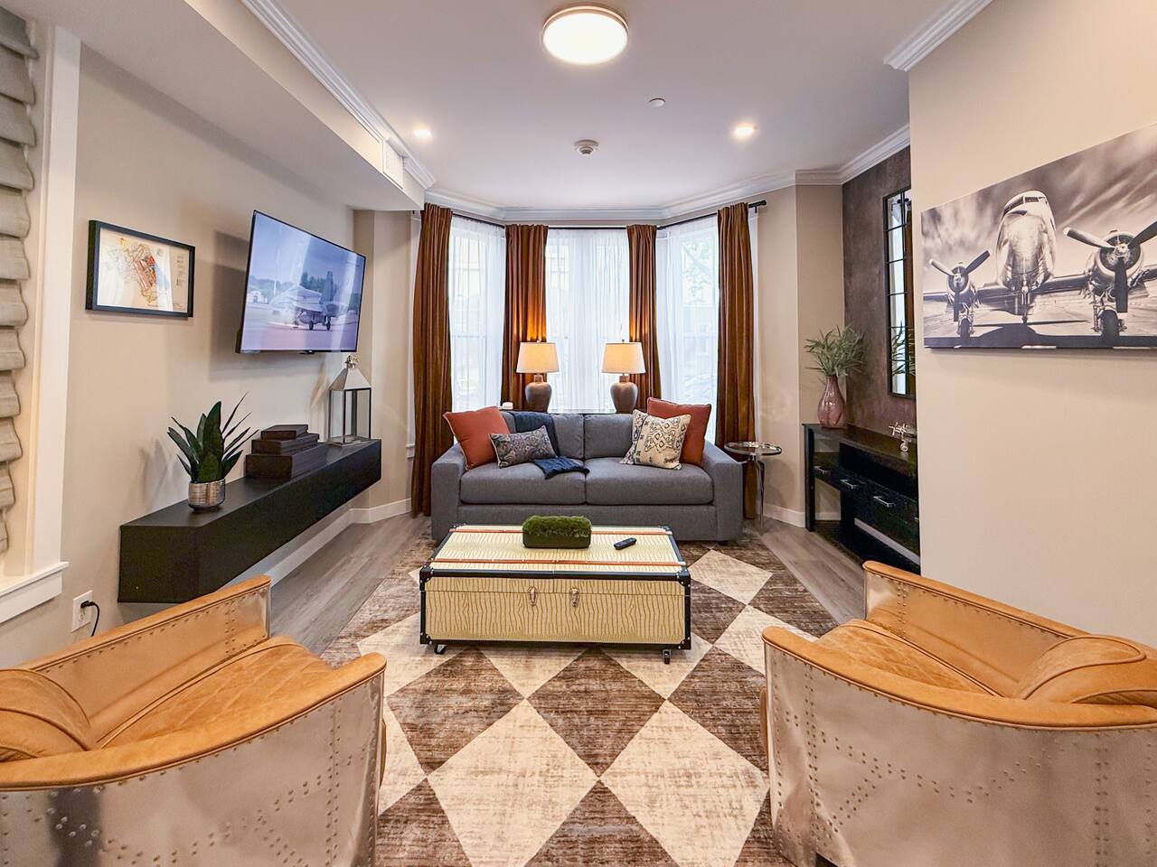 Enjoy the best of downtown Portsmouth in this newly renovated, aviation-themed 1-bedroom, 1-bathroom luxury apartment, located just a few blocks from Market Square. Step out of your door and find yourself immersed in the vibrant heart of the city, with Portsmouth’s top restaurants, cafes, boutiques, and historic landmarks all within a few minutes' walk. Explore the rich history of Strawbery Banke, visit Prescott Park, or stroll along the scenic waterfront. From trendy local shops to the buzzing dining scene, everything you need is right outside your door. The apartment is just a short walk to the Portsmouth Music Hall and only a few minutes from the bustling Bow Street, home to charming bars and eateries overlooking the water. Inside, you’ll find a fully equipped kitchen with sleek stainless steel appliances, plush linens in the bedroom and an in-unit laundry to offer added convenience during your stay. Whether you’re in town for business or pleasure, this rental provides the perfect balance of luxury, comfort, and unbeatable location.