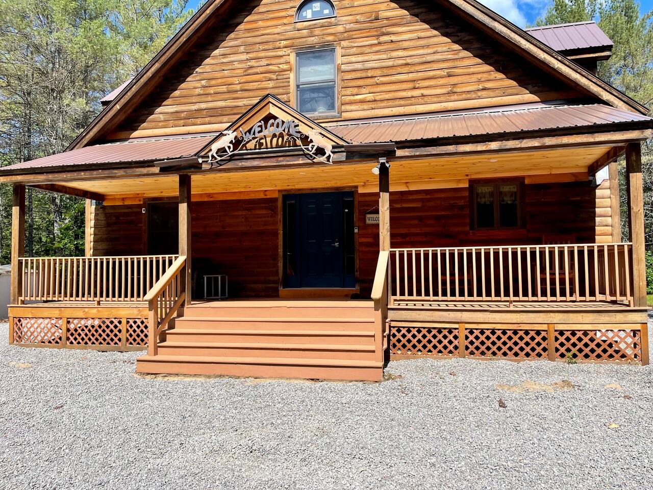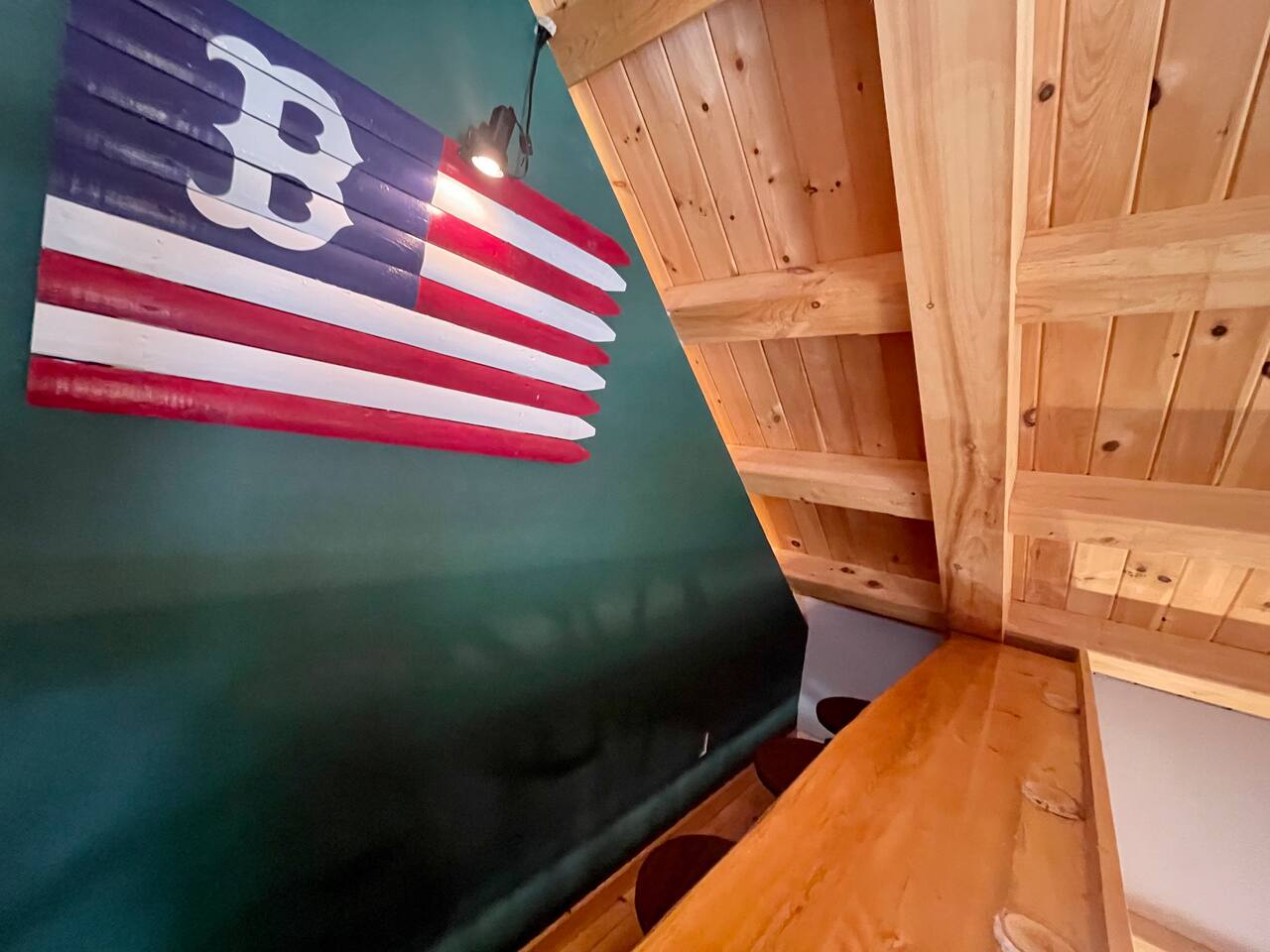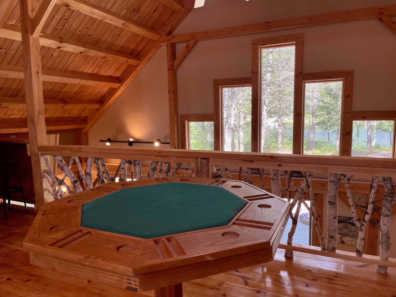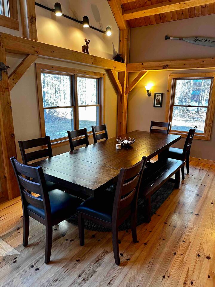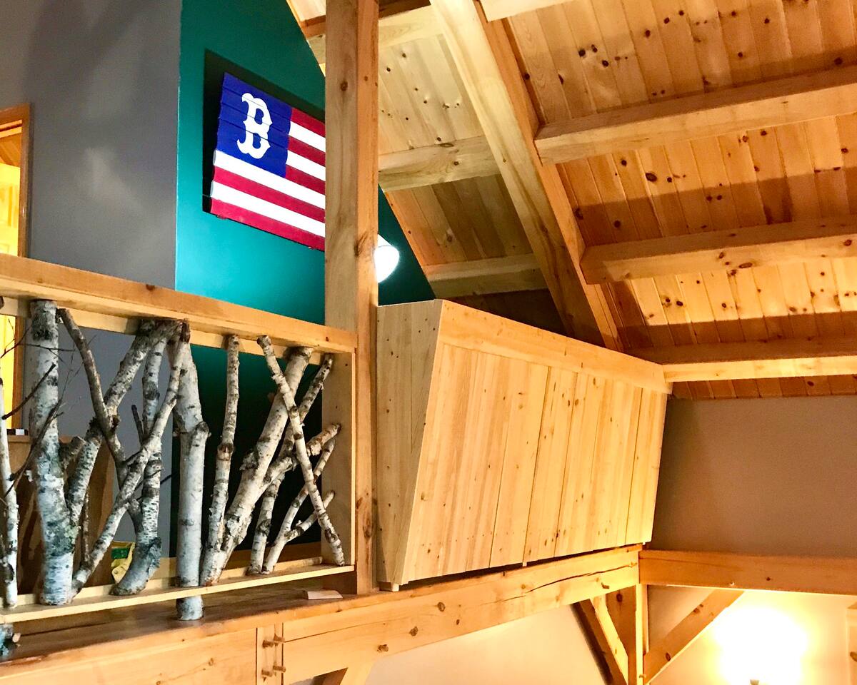 Our home is truly a unique gem. Crafted in traditional post and beam the cabin has a rich wood smell as soon as you enter it. One of our favorite aspects of the home is the Monsta' Skybox Seats (you may recognize the green color of the wall). The outdoor space is truly the show stopper. A private dock, fire pit area, and farmers porch will give you plenty to do outside.
