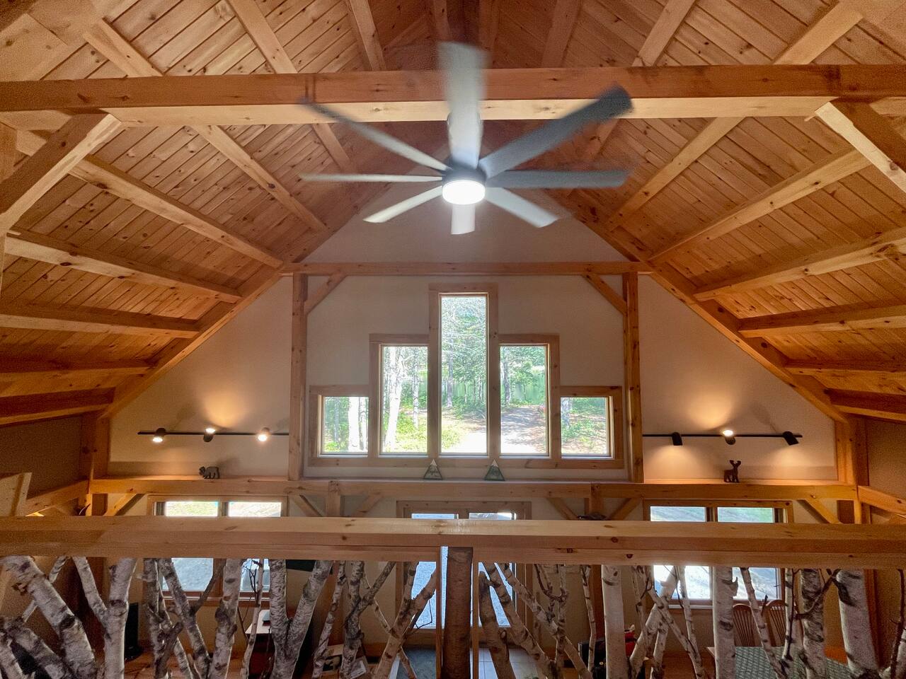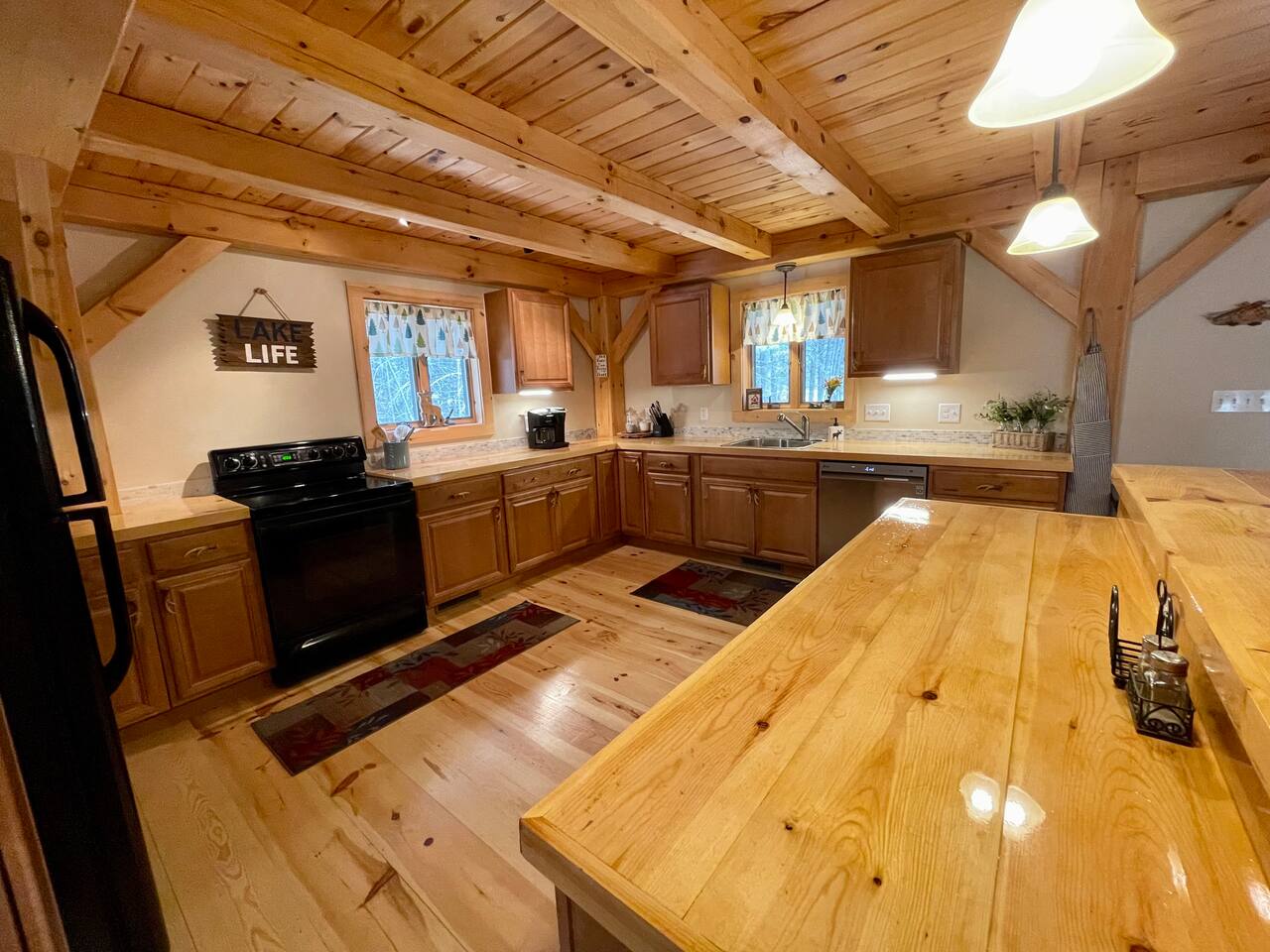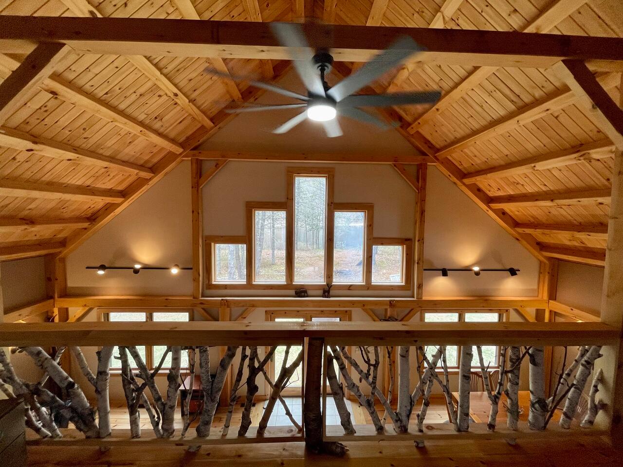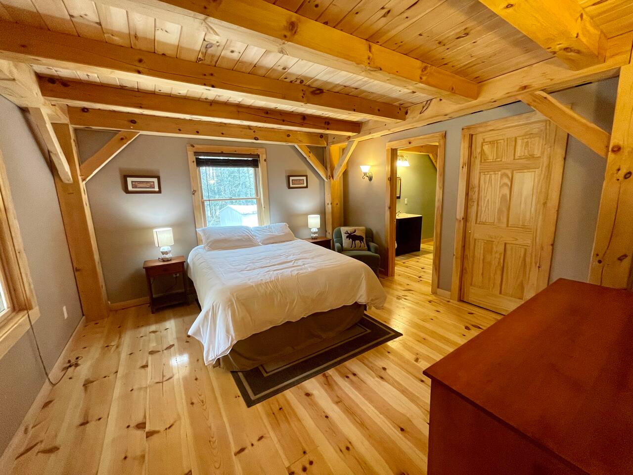 Our home is truly a unique gem. Crafted in traditional post and beam the cabin has a rich wood smell as soon as you enter it. One of our favorite aspects of the home is the Monsta' Skybox Seats (you may recognize the green color of the wall). The outdoor space is truly the show stopper. A private dock, fire pit area, and farmers porch will give you plenty to do outside.