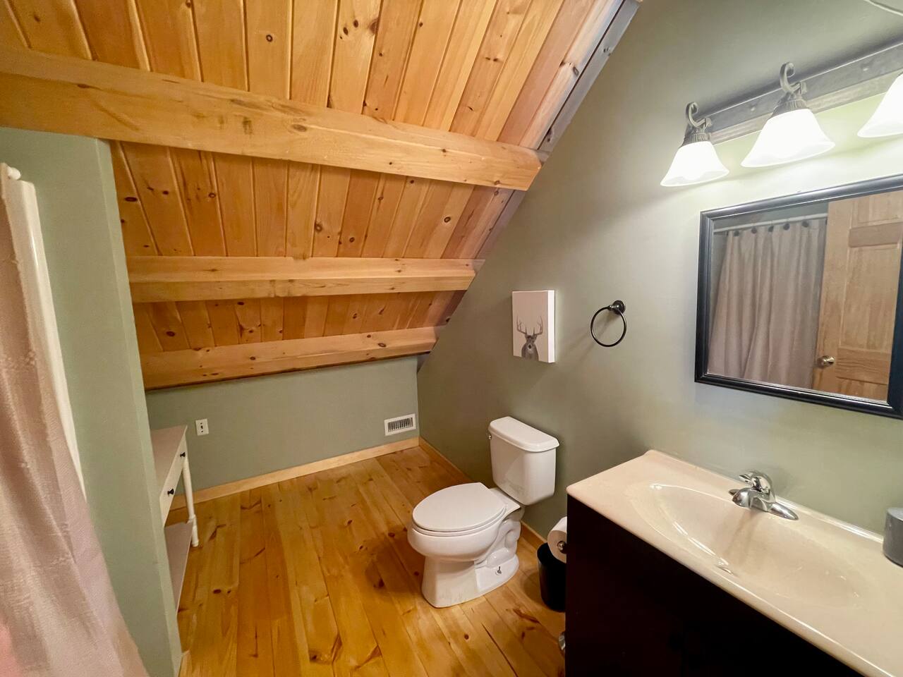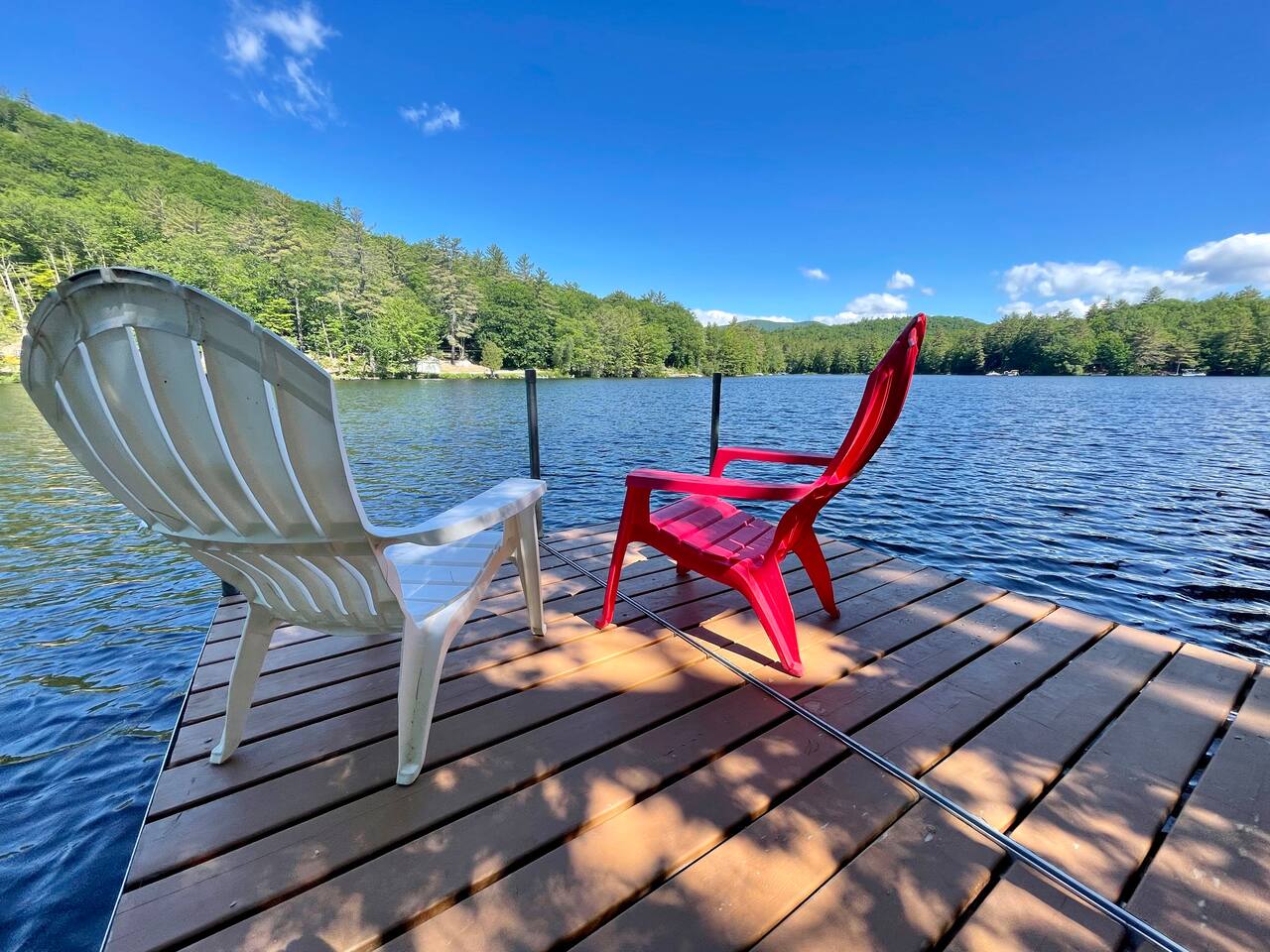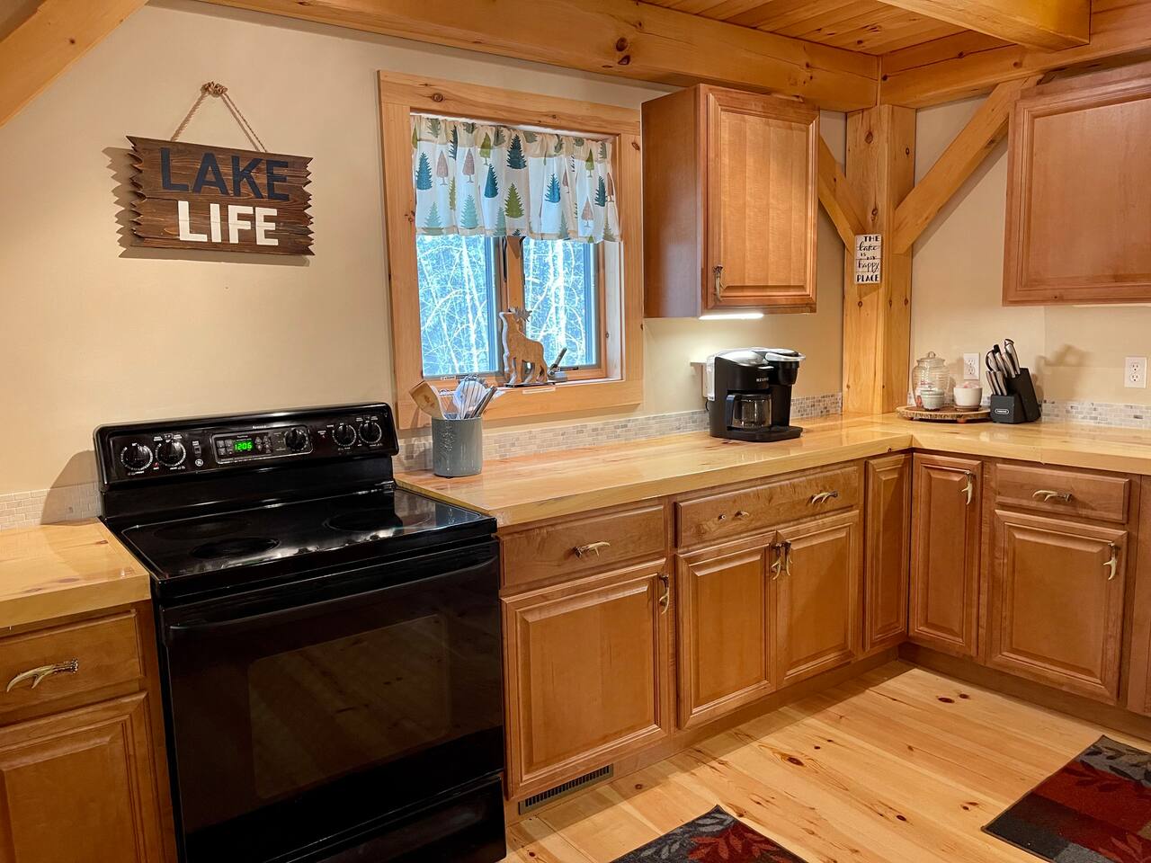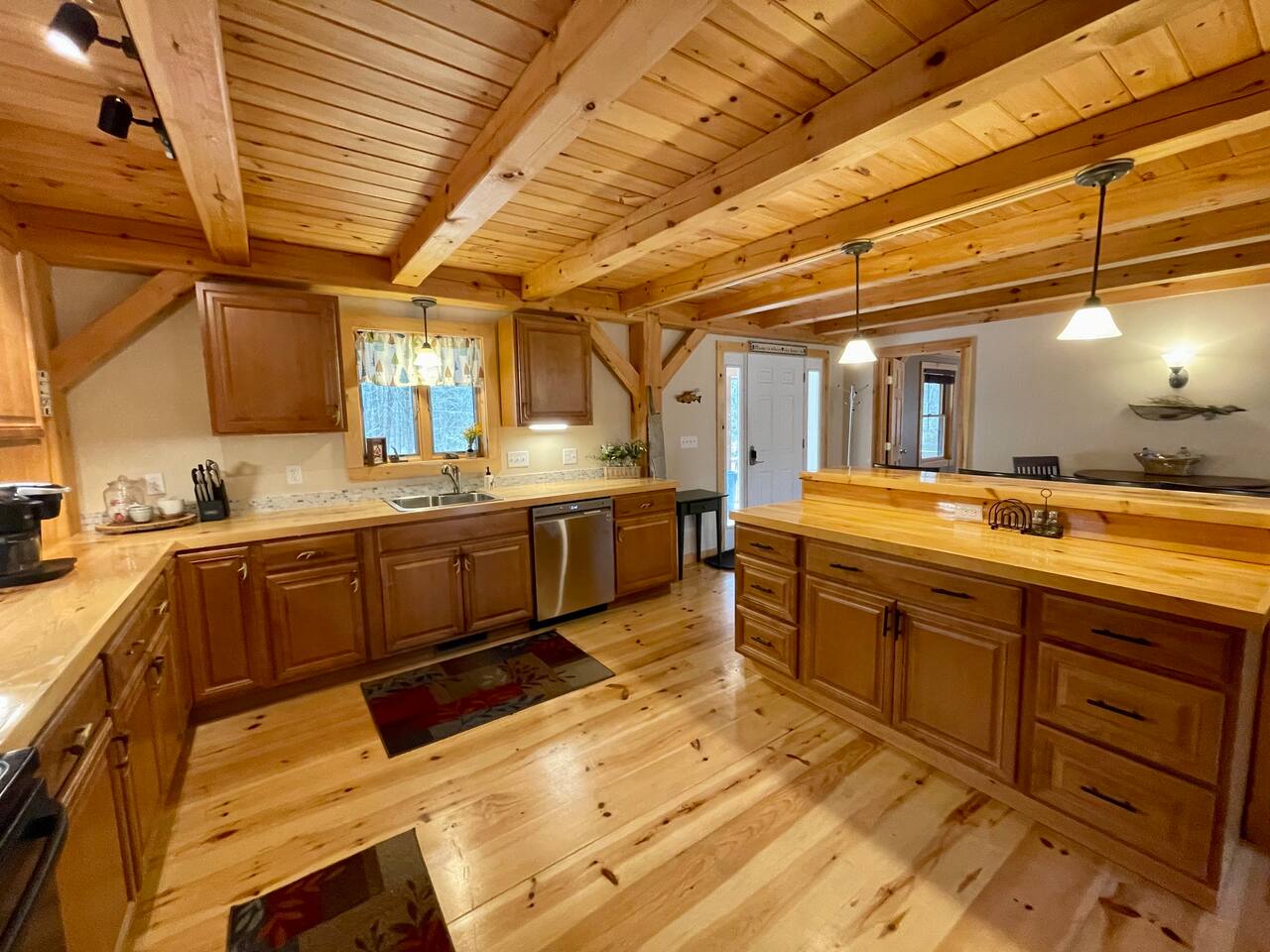Our home is truly a unique gem. Crafted in traditional post and beam the cabin has a rich wood smell as soon as you enter it. One of our favorite aspects of the home is the Monsta' Skybox Seats (you may recognize the green color of the wall). The outdoor space is truly the show stopper. A private dock, fire pit area, and farmers porch will give you plenty to do outside.