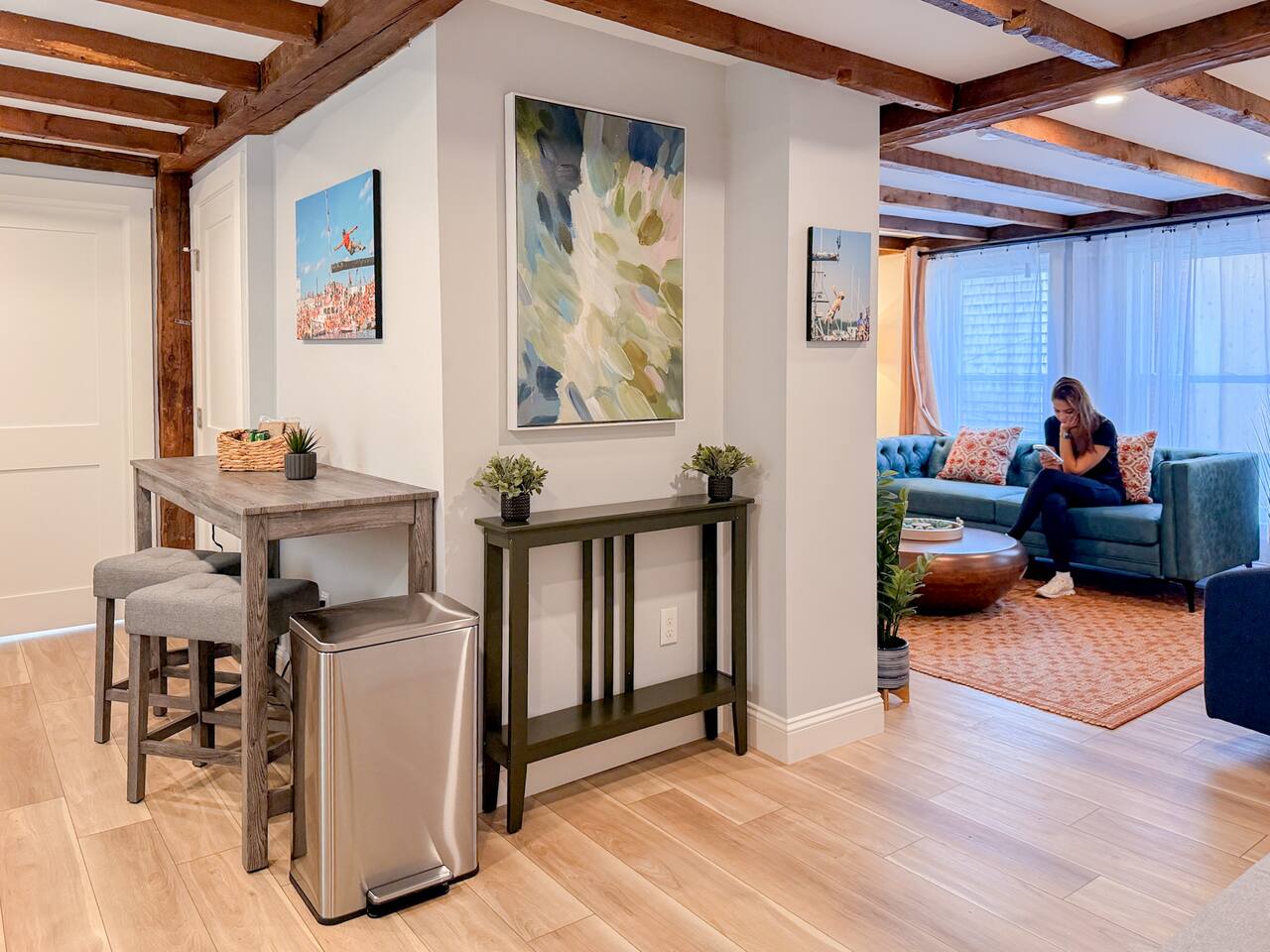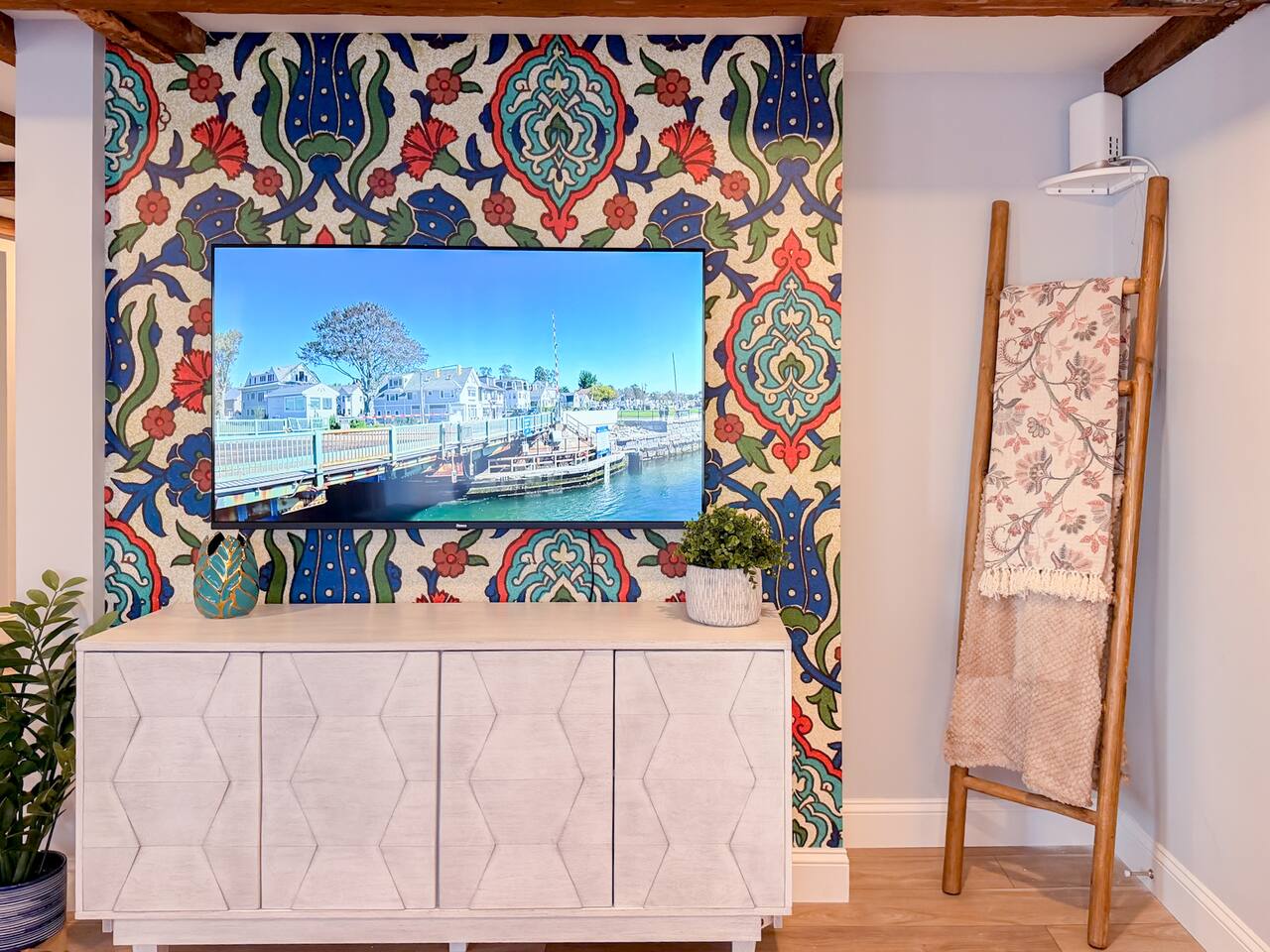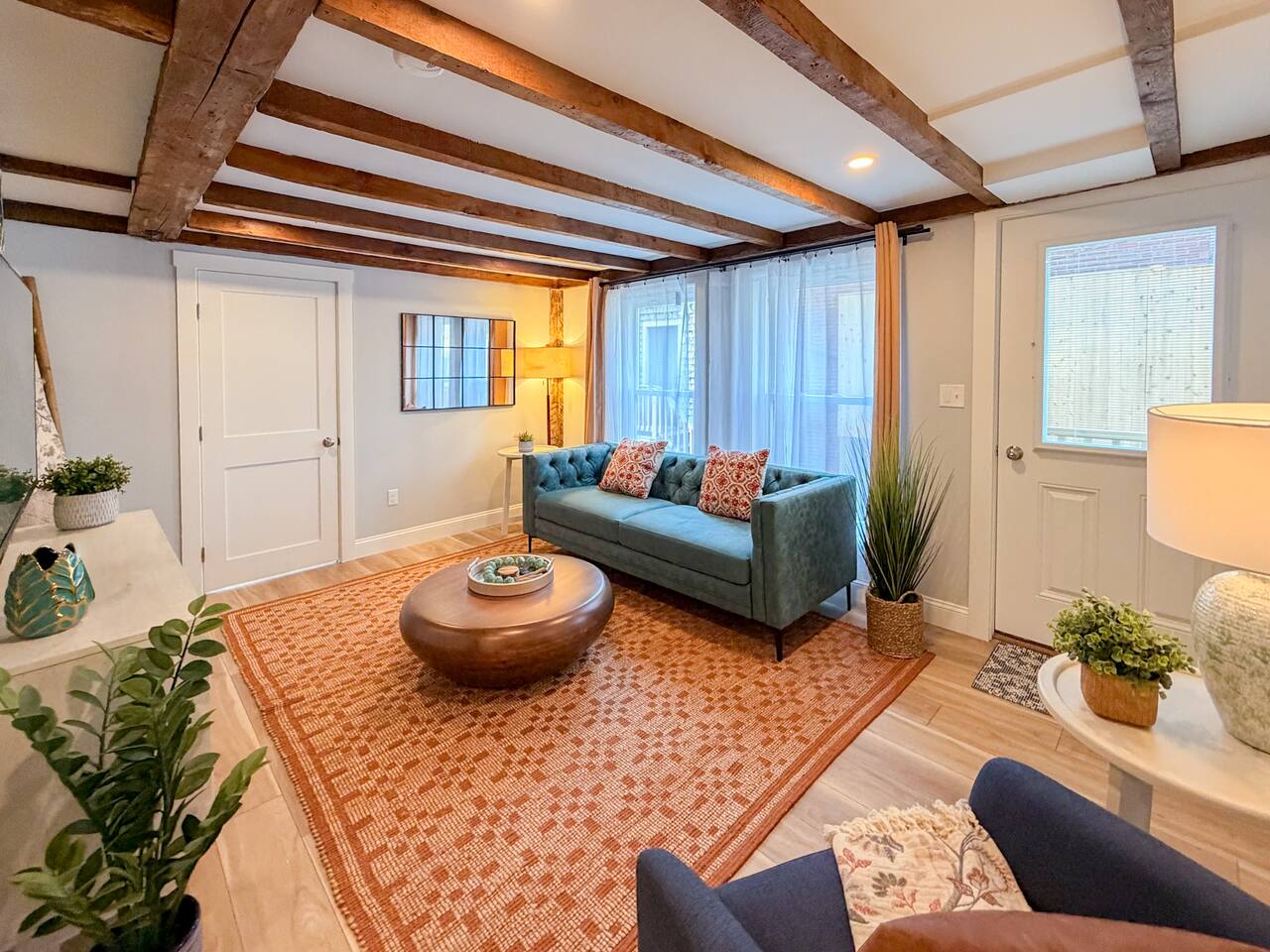 ✨ The Space Step inside and be greeted by a bright, airy living space featuring exposed beams, tasteful coastal décor, and soft lighting that creates a relaxing atmosphere. Unwind in the cozy living room, complete with comfortable seating and a smart TV for movie nights after a day of exploring the harbor. The modern kitchen is fully equipped with everything you need — from stainless steel appliances and a dishwasher to cookware, utensils, a coffee maker, and dining essentials. Whether you’re whipping up breakfast or enjoying a quiet dinner in, this space is designed for convenience and comfort. The bedroom features a plush queen bed with quality linens, ensuring a restful night’s sleep. The bathroom is spotless and well-appointed with fresh towels and basic toiletries for your stay.
