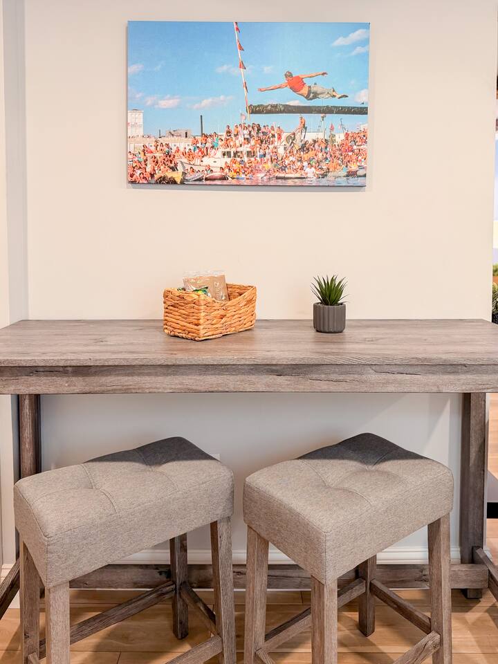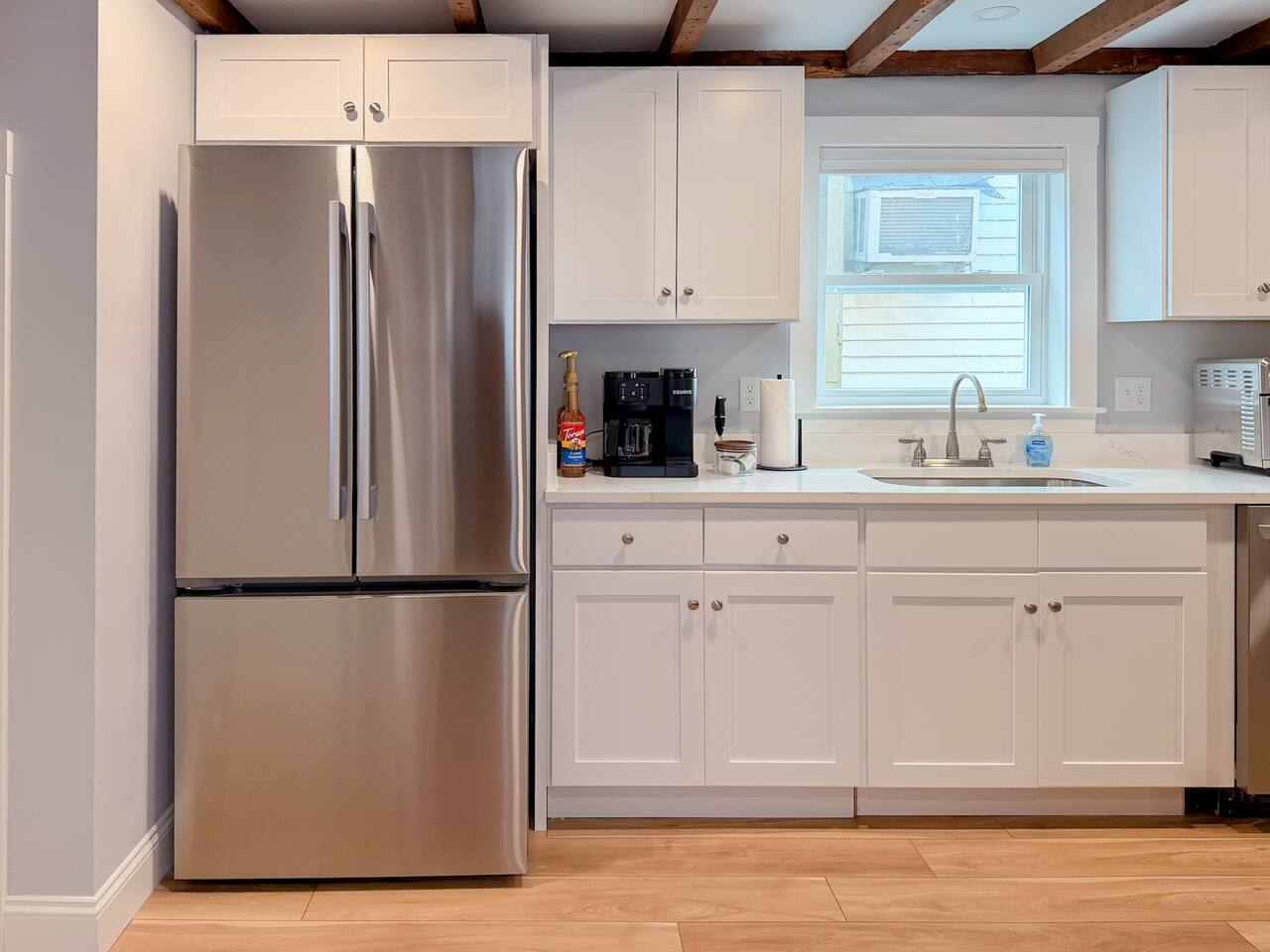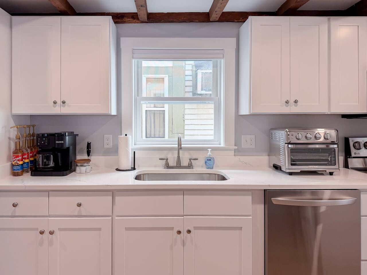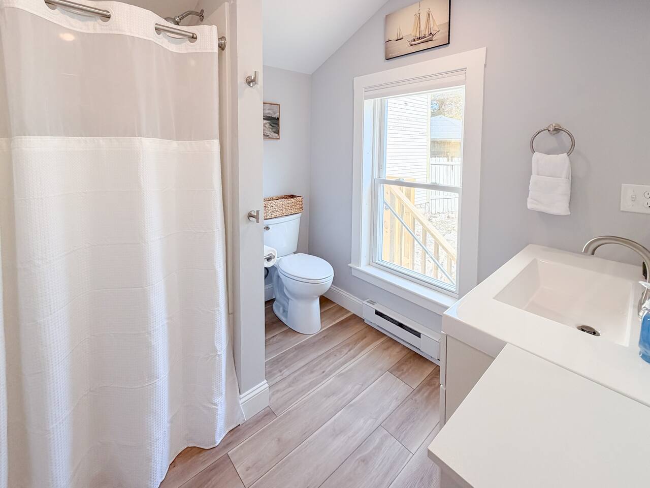 ✨ The Space Step inside and be greeted by a bright, airy living space featuring exposed beams, tasteful coastal décor, and soft lighting that creates a relaxing atmosphere. Unwind in the cozy living room, complete with comfortable seating and a smart TV for movie nights after a day of exploring the harbor. The modern kitchen is fully equipped with everything you need — from stainless steel appliances and a dishwasher to cookware, utensils, a coffee maker, and dining essentials. Whether you’re whipping up breakfast or enjoying a quiet dinner in, this space is designed for convenience and comfort. The bedroom features a plush queen bed with quality linens, ensuring a restful night’s sleep. The bathroom is spotless and well-appointed with fresh towels and basic toiletries for your stay.