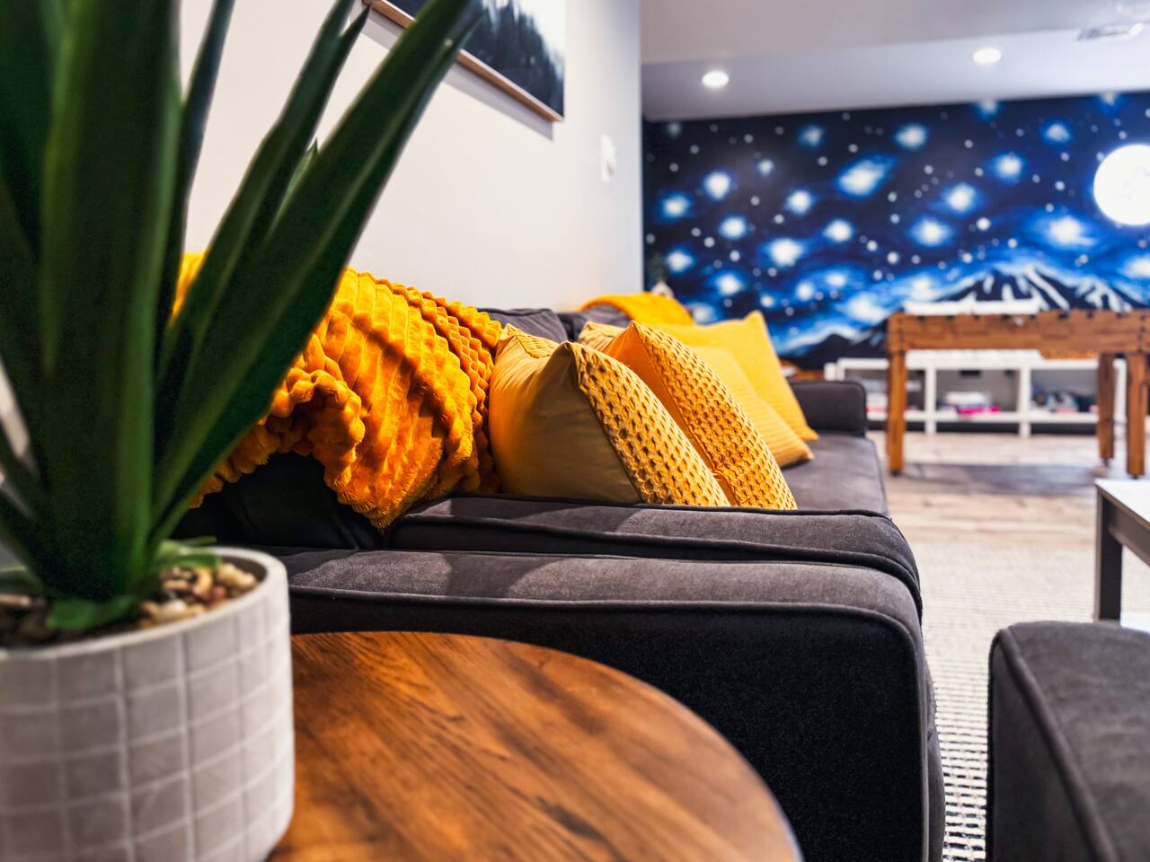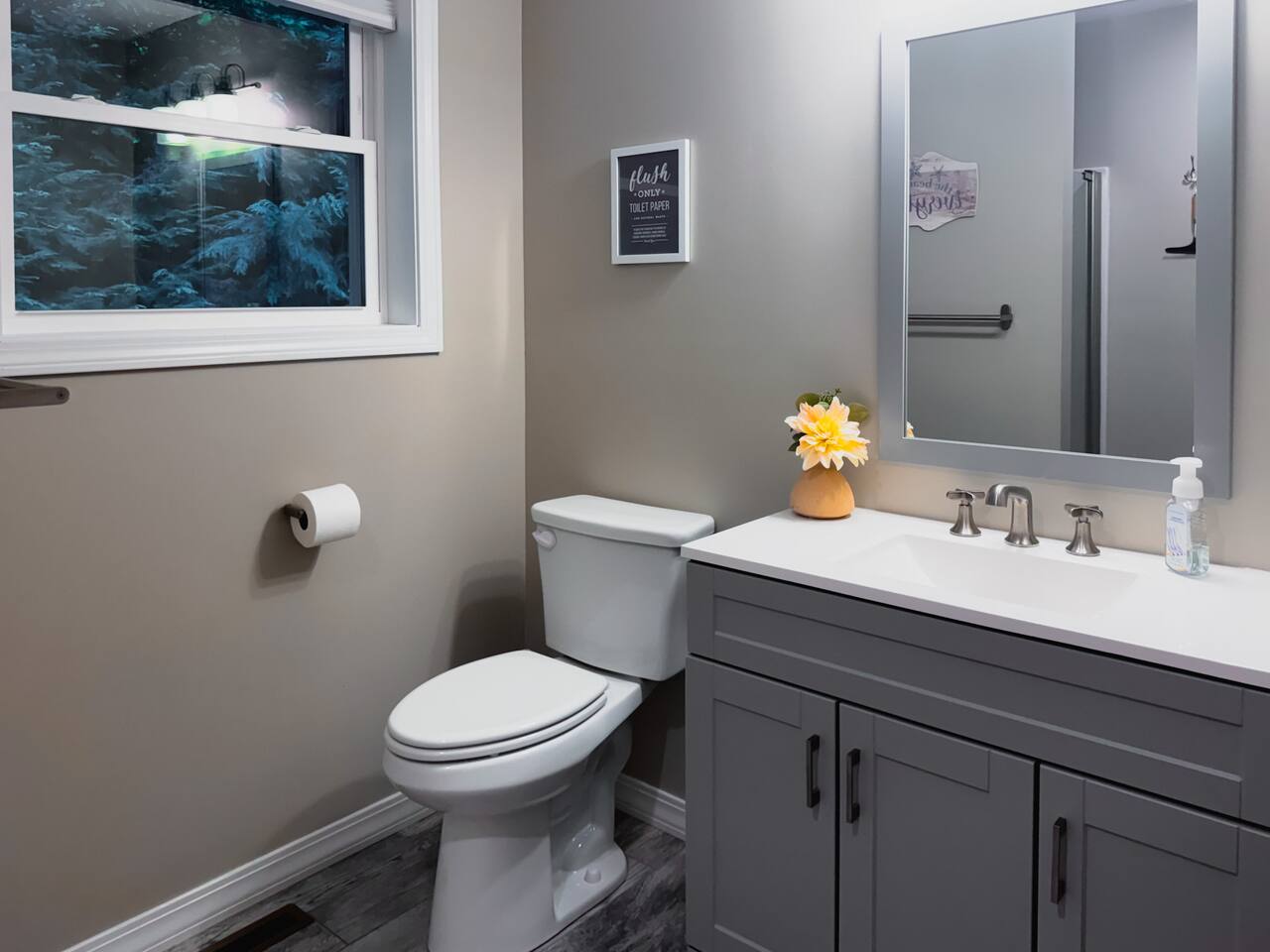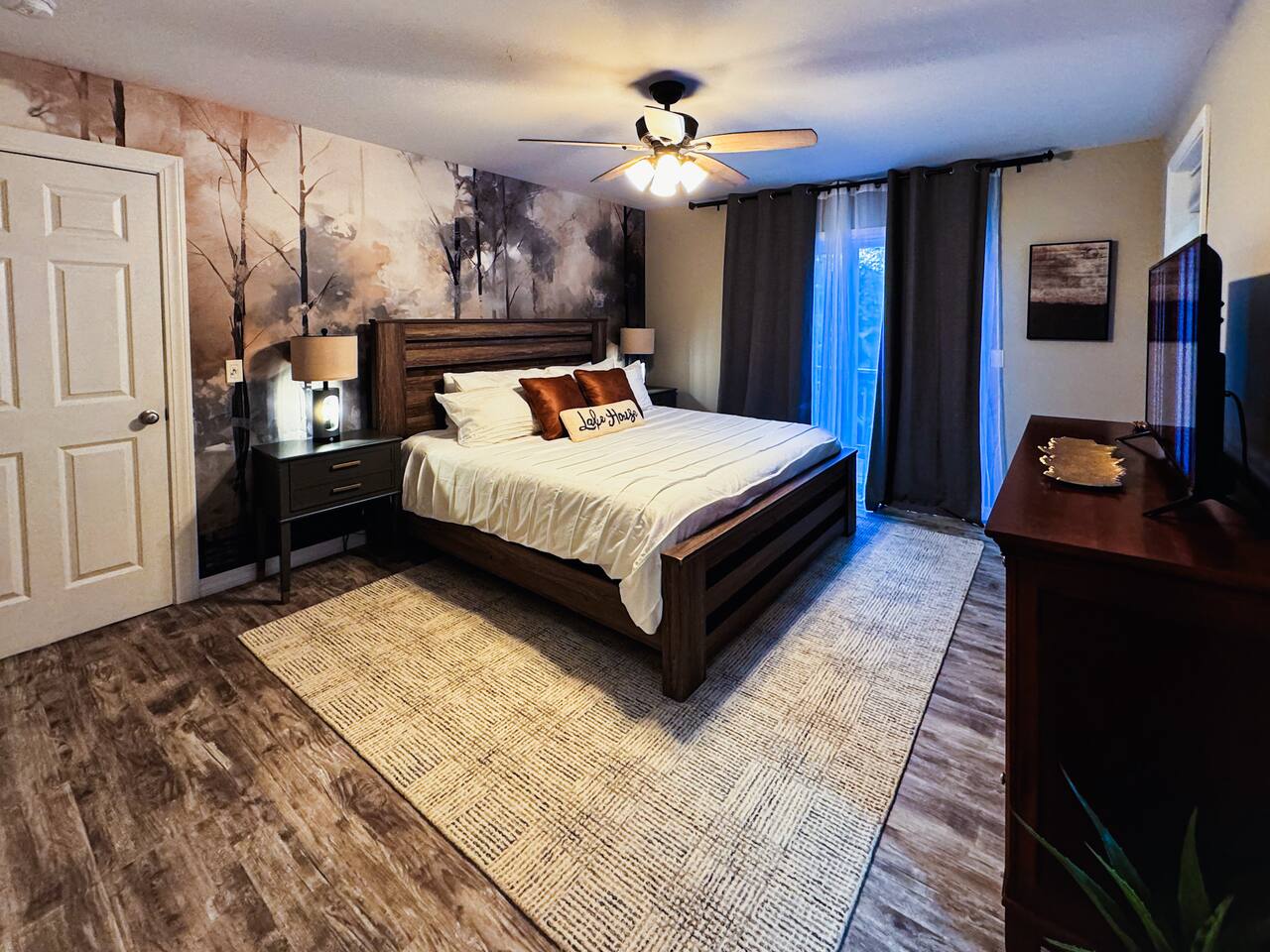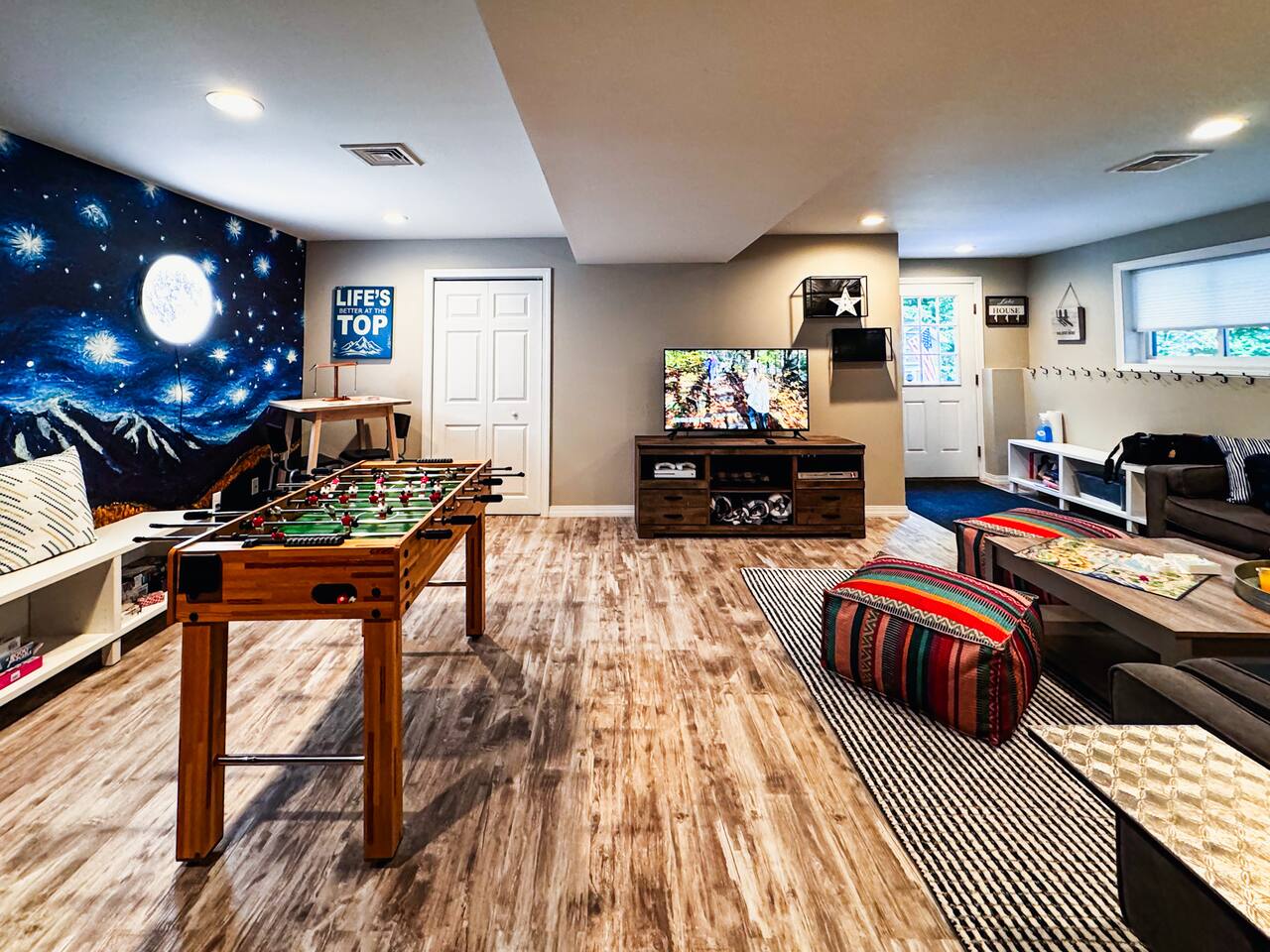 This stunning home is perfect for families. Enjoy a spacious living room, fully stocked kitchen, private master suite with private bathroom and private deck, and three additional bedrooms. Relax in the hot tub, gather around the fire pit, or grill up your favorite food. Inside, you'll find smart TVs, Xbox, foosball, books and games. With lake access a short distance away and plenty of entertainment options, this retreat ensures a memorable stay for parents, kids and grandparents. Book today!