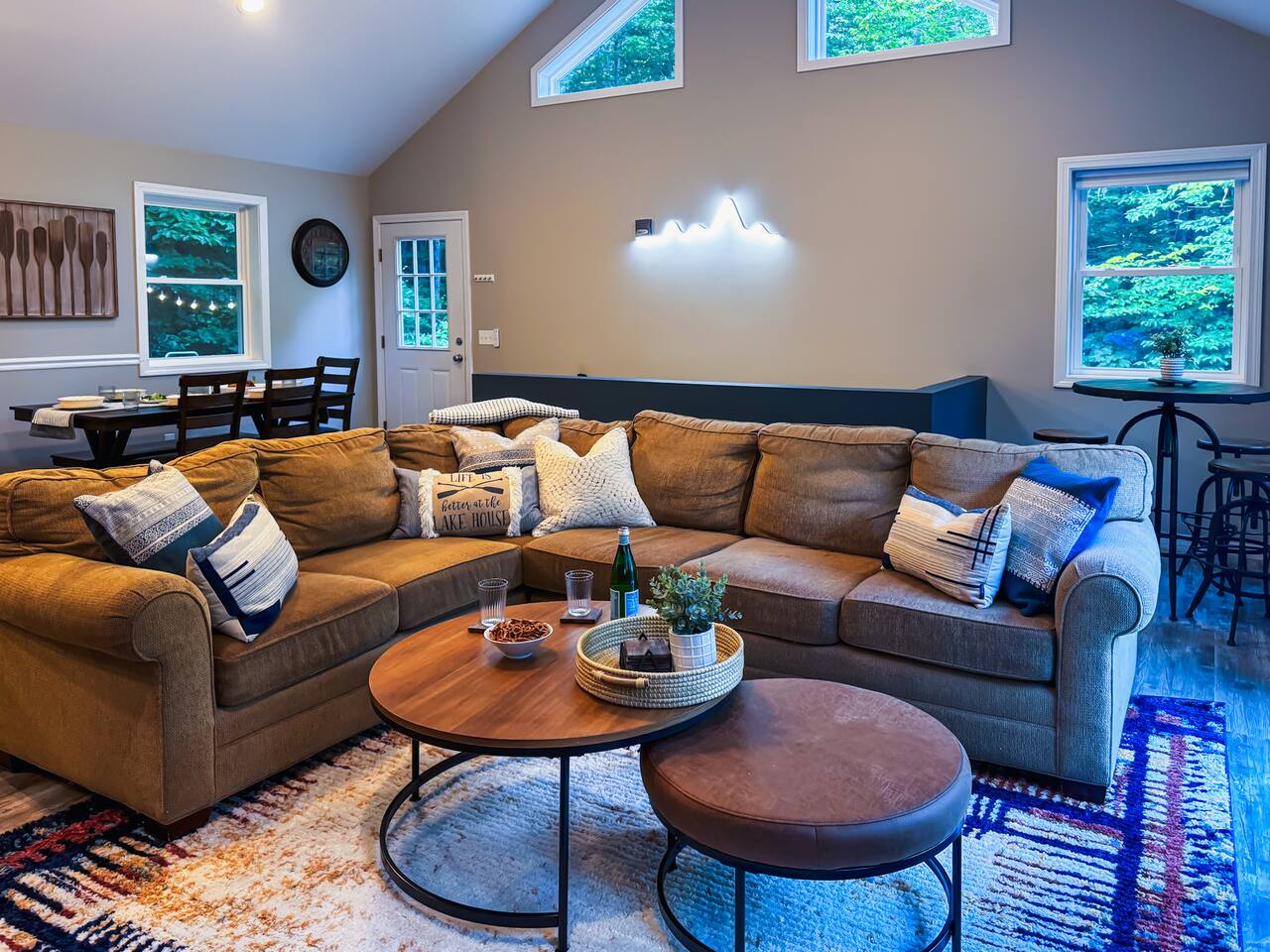 Welcome to your dream vacation home! This stunning retreat is designed to comfortably sleep 10 guests, making it the perfect getaway for families with children. Here, you'll find the ideal blend of luxury, comfort, and family-friendly amenities. Inside the Home Living Spaces Spacious Living Room: Gather around the the open concept space, enjoy a movie on the smart TV, or dive into one of the many books and games available. Entertainment Haven: Challenge each other to a game of foosball or take a break with the Xbox. Kitchen and Dining Fully Stocked Kitchen: Whether you’re preparing a quick snack or a gourmet meal, our kitchen has everything you need. Dining Area Enjoy meals together at the large dining table, with additional seating at the breakfast bar. Bedrooms Private Master Suite: Relax in your own oasis with a king-sized bed, ensuite bathroom, and private deck with woods view. Additional Bedrooms Perfectly appointed to accommodate kids and adults alike, ensuring everyone has a restful night’s sleep. Bathrooms 2.5 Bathrooms: Modern, clean, and fully stocked with essentials. Outdoor Features Relaxation and Fun Hot Tub: Unwind under the stars after a day of adventure. Firepit: Share stories and roast marshmallows around the fire. Grill: Enjoy a family BBQ on the spacious deck ot in the backyard. Activities Lake Access: Spend your days swimming, kayaking, or simply soaking up the sun by the lake in the summer time. Ski mountain Access All of the major ski mountains are but a short drive away. Technology and Connectivity WiFi: Stay connected with high-speed internet throughout the house. Smart TVs: Stream your favorite shows and movies. Perfect for Families This home is designed with families in mind. From the extensive game collection to the comfortable and spacious living areas, every detail has been considered to ensure a memorable stay. The variety of entertainment options will keep children of all ages engaged and happy, while parents can relax and unwind in the luxurious master suite or the hot tub. Book your stay today and create unforgettable family memories at this stunning lake retreat!