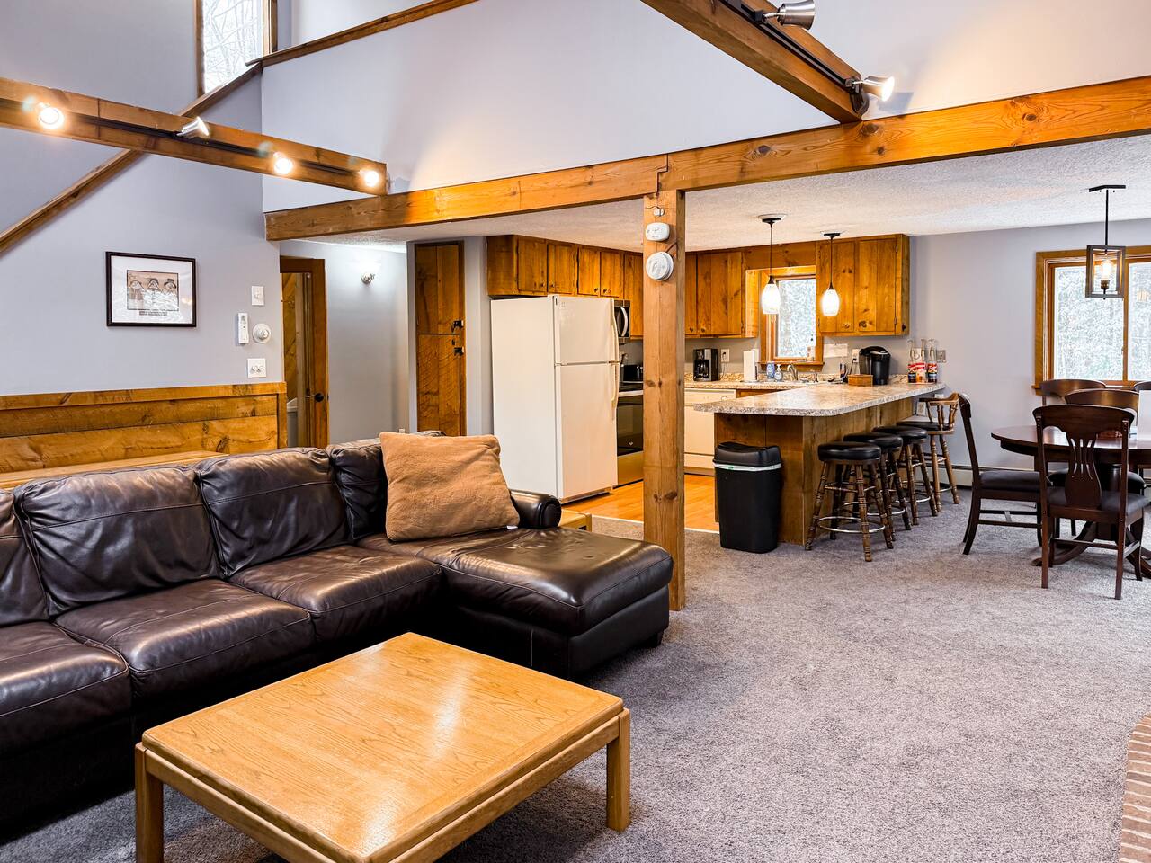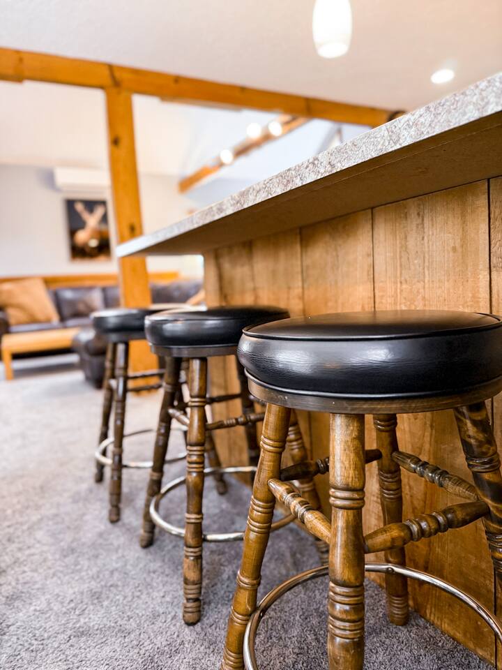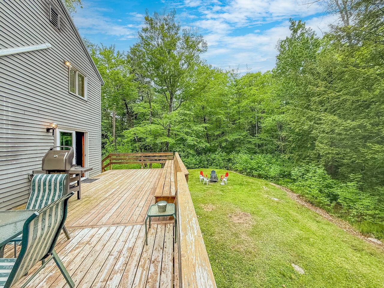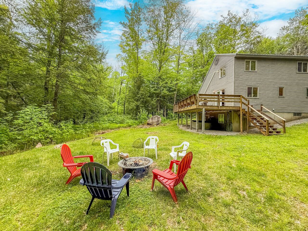 Our home includes all of the elements you'll need for a perfect vacation. One of our favorite spots is the immensely large deck off the back of the house. Spread out and enjoy the wooded backyard. If you're in town during the winter months you'll love the wood burning stove and the mud room to hold all of your skis, poles and winter jackets after a long day of skiing. Prepare your own meals in our full kitchen while enjoying the open floor of the kitchen, living room and dining room.