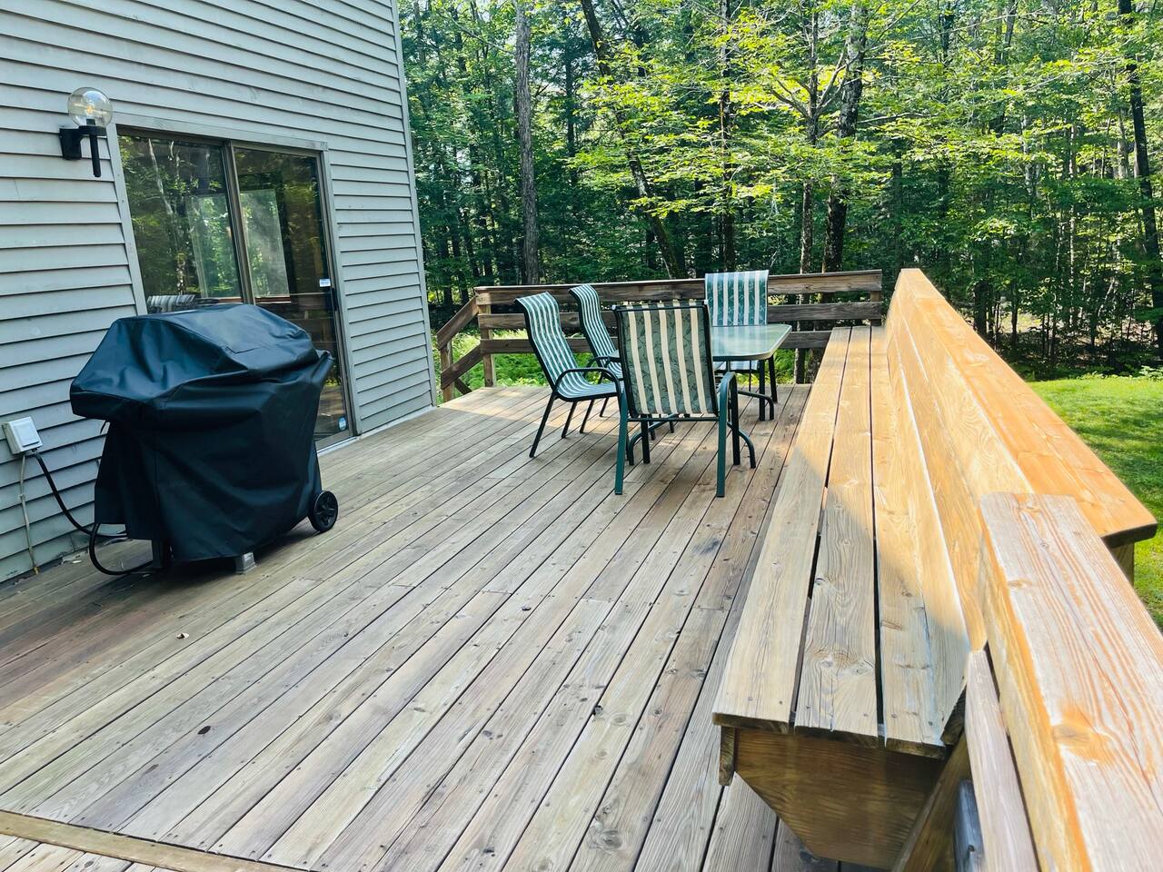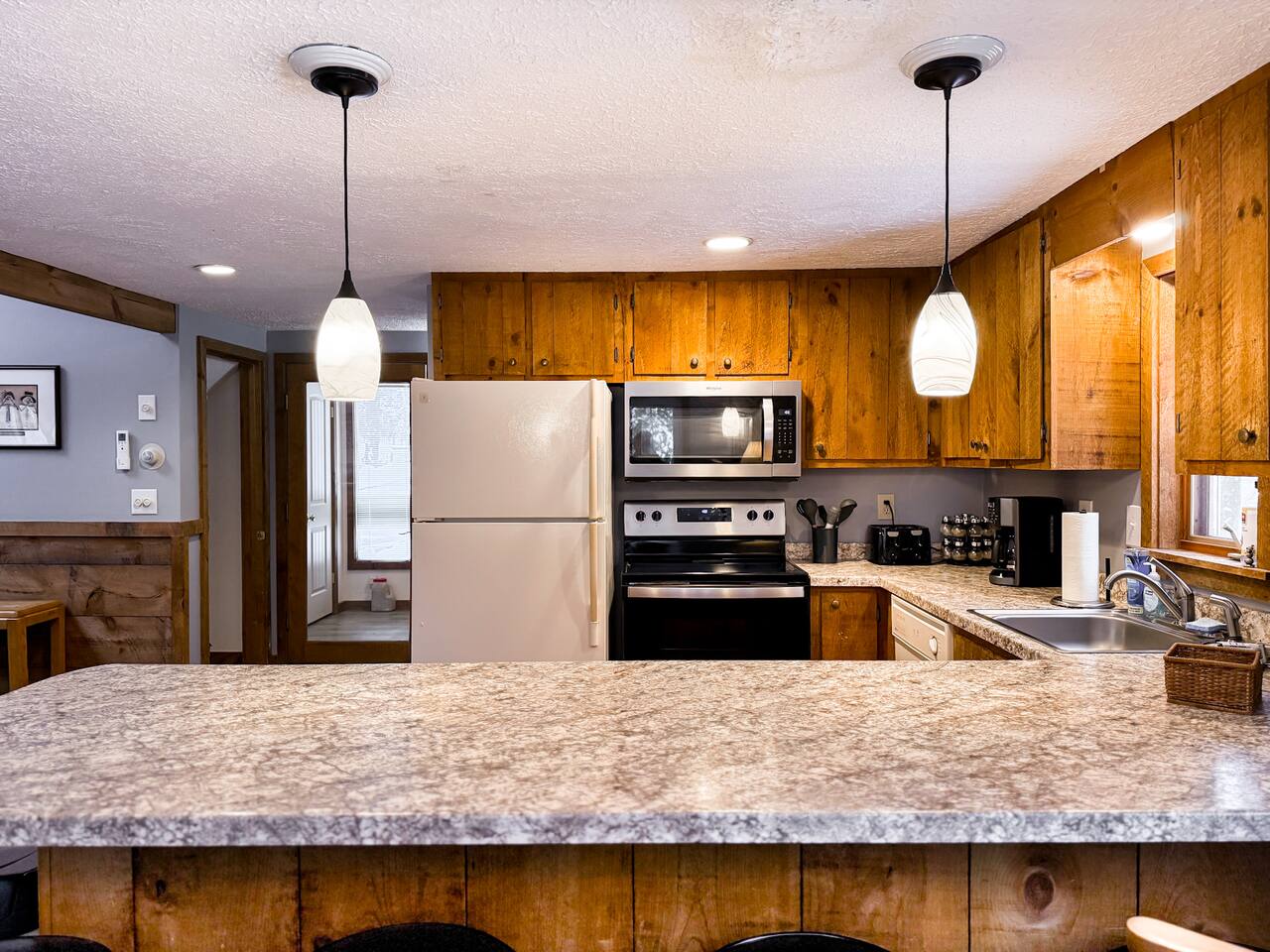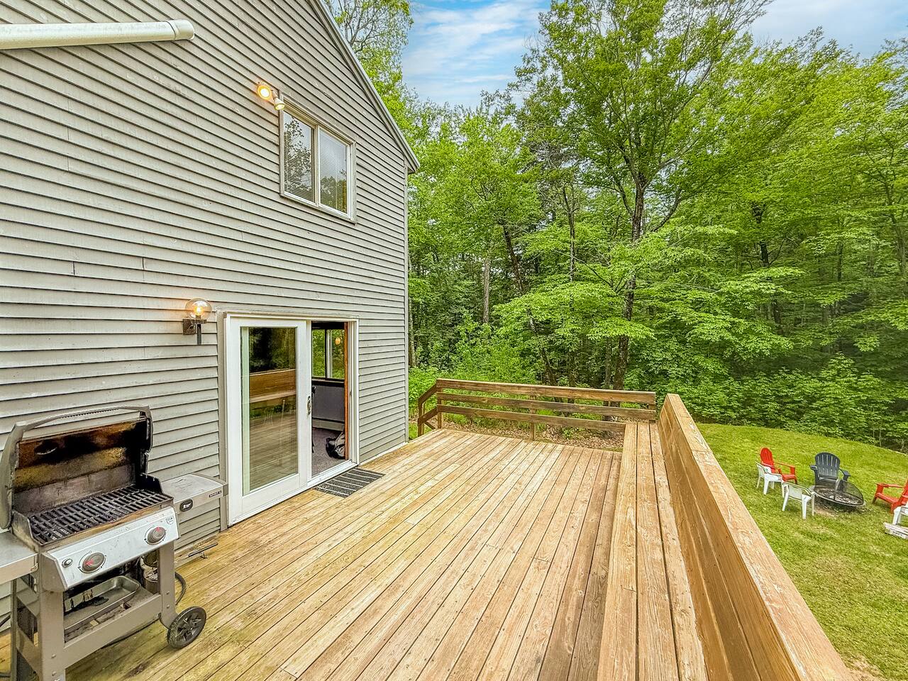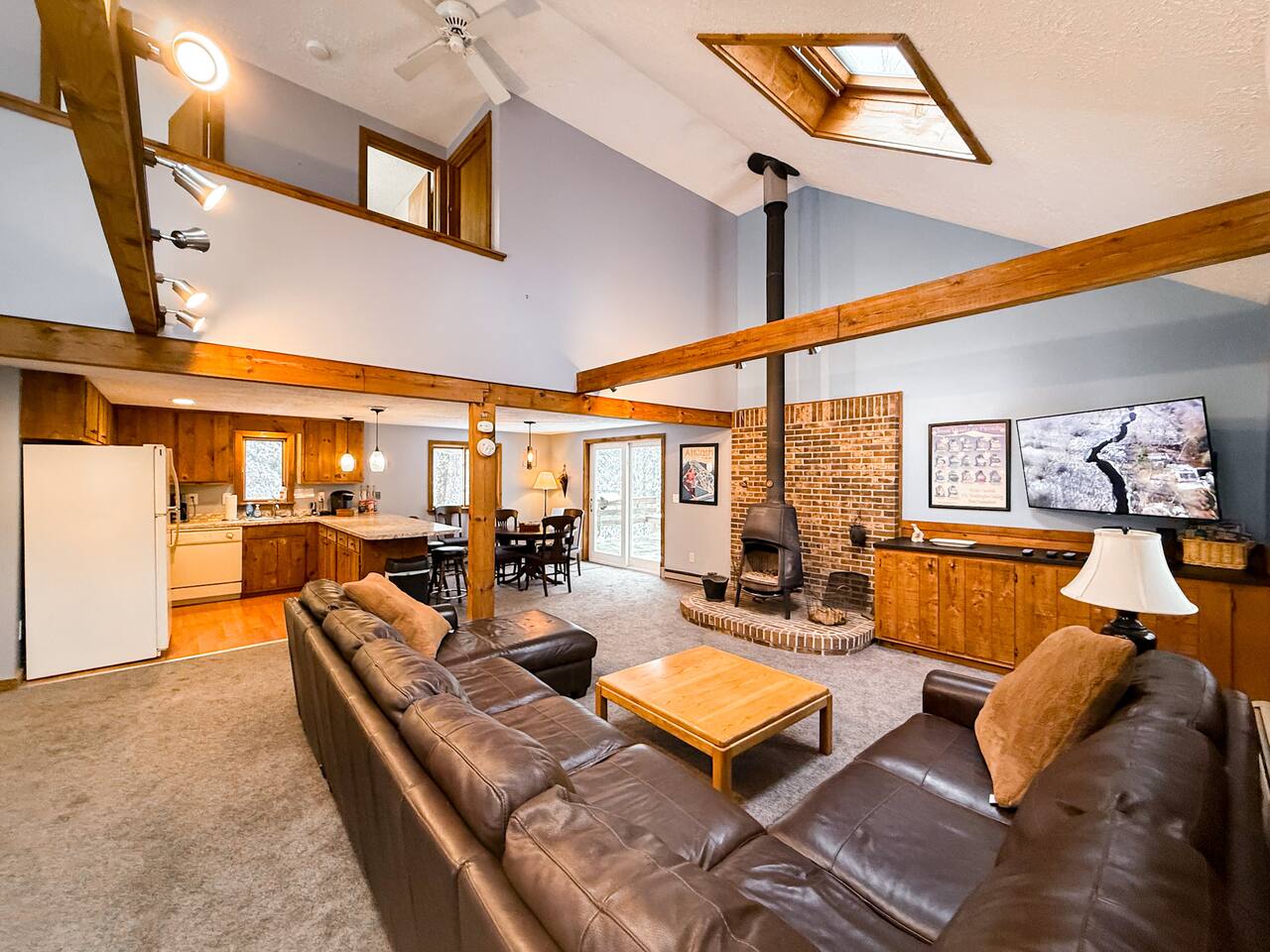 Our home includes all of the elements you'll need for a perfect vacation. One of our favorite spots is the immensely large deck off the back of the house. Spread out and enjoy the wooded backyard. If you're in town during the winter months you'll love the wood burning stove and the mud room to hold all of your skis, poles and winter jackets after a long day of skiing. Prepare your own meals in our full kitchen while enjoying the open floor of the kitchen, living room and dining room.