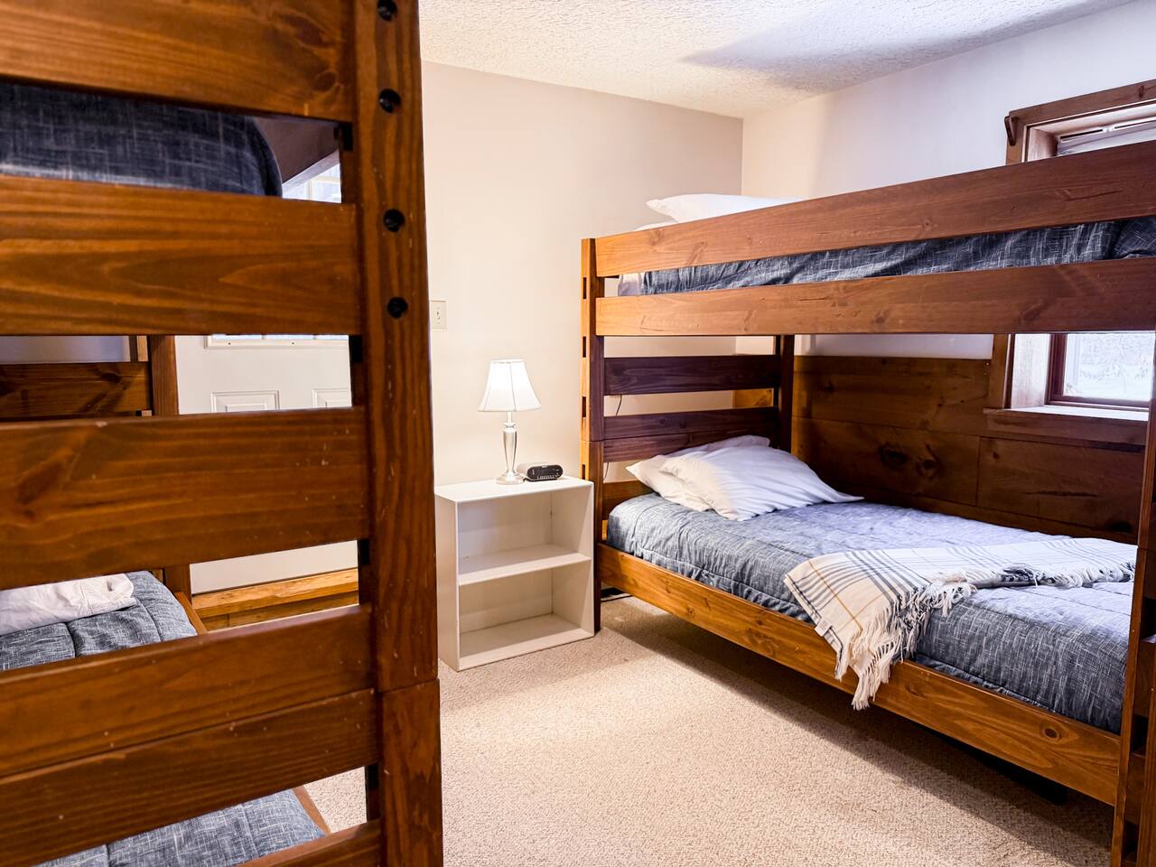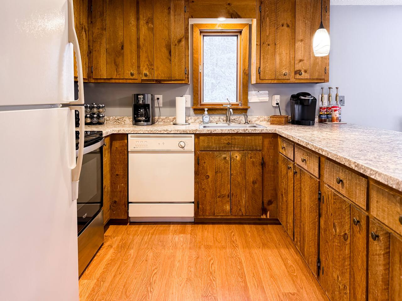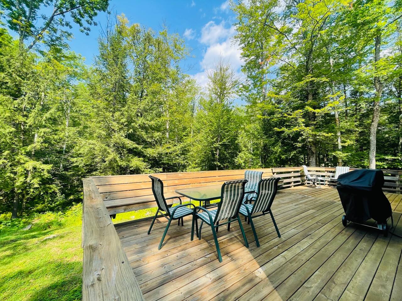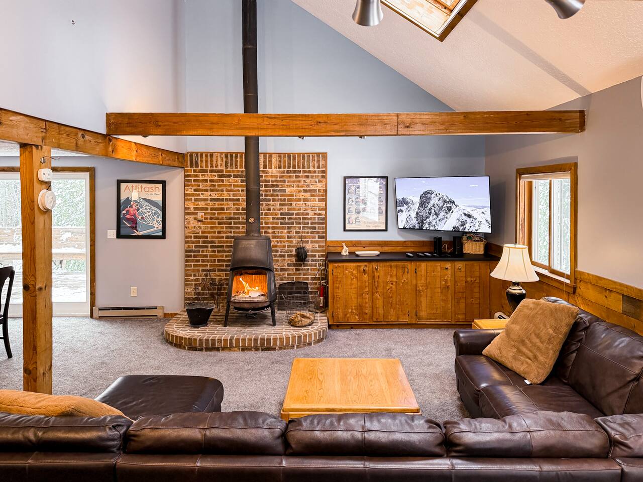 Our home includes all of the elements you'll need for a perfect vacation. One of our favorite spots is the immensely large deck off the back of the house. Spread out and enjoy the wooded backyard. If you're in town during the winter months you'll love the wood burning stove and the mud room to hold all of your skis, poles and winter jackets after a long day of skiing. Prepare your own meals in our full kitchen while enjoying the open floor of the kitchen, living room and dining room.