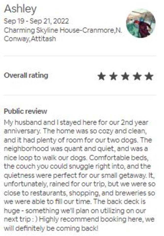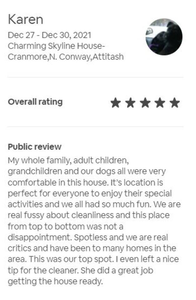 The Skyline house is the perfect spot for families visiting the White Mountain. Nestled in a very quiet neighborhood, our home is ideal for a single family or a couple of families visiting for summer hikes, StoryLand, winter time skiing or anything else the valley has to offer. > 6 min drive to North Conway > 7 min drive to Storyland, Schouler Park & Conway Scenic Railroad > 8 min drive to Cranmore & Echo Lake State Park > 9 min drive to Diana's Baths