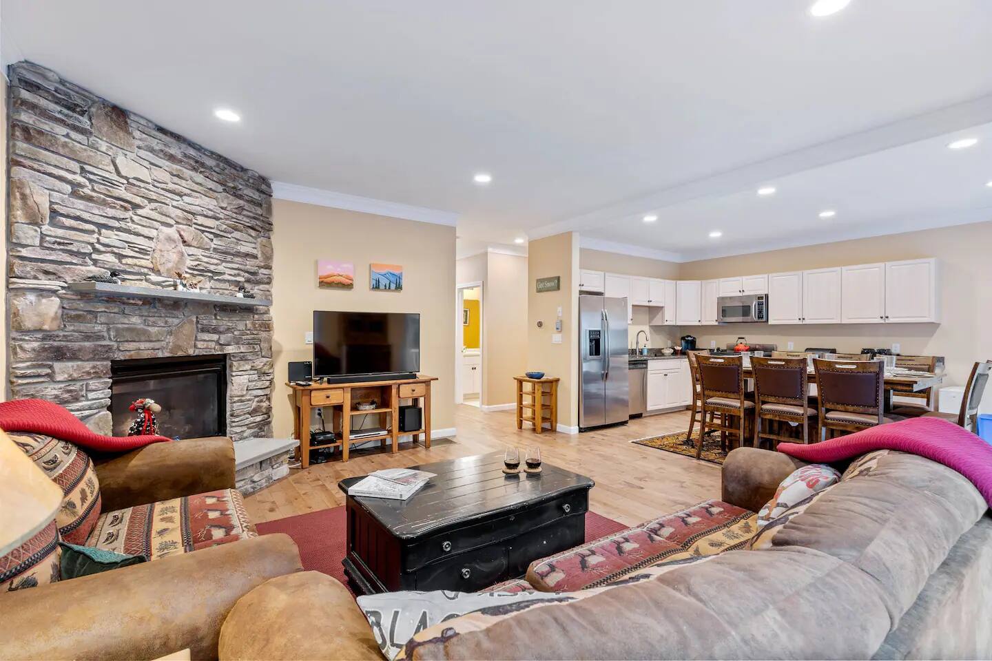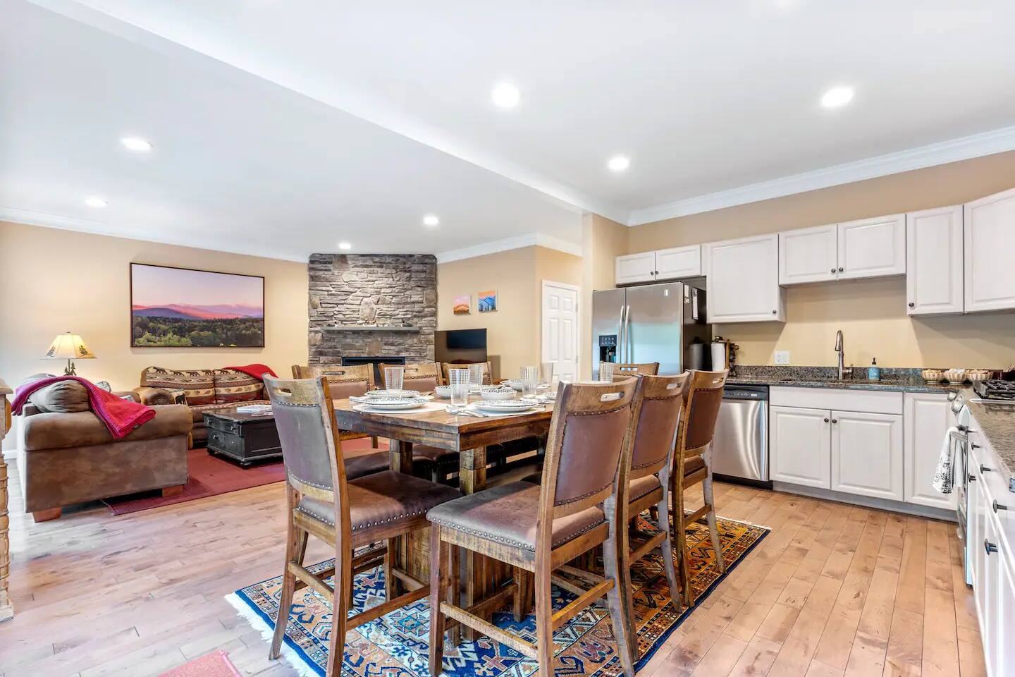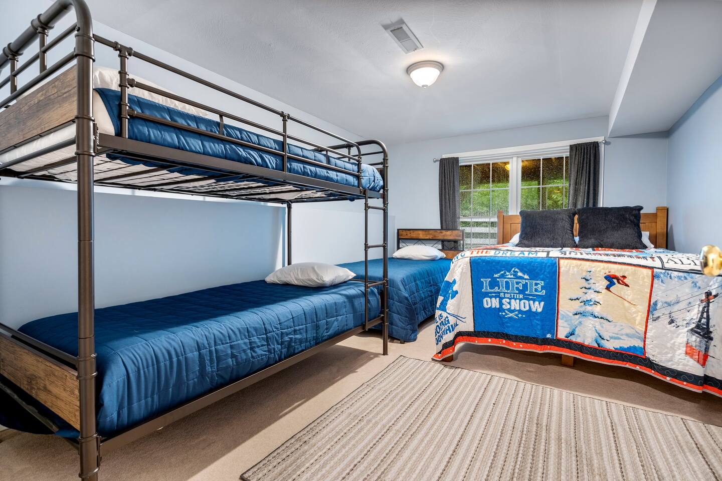 Less than 3 miles to Loon Mountain! BEDROOMS: Bedroom 1: King Bed (with en-suite bathroom) Bedroom 2: King Bed Bedroom 3: King Bed Bedroom 4: 1 Bunk Bed, 1 Twin Bed, 1 Queen Bed COMMUNITY AMENITIES (located in Forest Ridge Clubhouse, ~1 minute from the home. Heated indoor pool, heated outdoor pool (seasonal), sauna, arcade games, tennis courts INDOOR LIVING: gas fireplace, Wii game console, Smart TVs, breakfast bar w/ seating, garage access OUTDOOR LIVING: Gas grill (propane provided), private deck w/ outdoor dining area KITCHEN: Cooking basics, dishwasher, stove/oven, refrigerator, microwave, dishware & flatware, toaster GENERAL: Free WiFi, keyless entry, central heating, complimentary toiletries, linens & towels, in-unit washer & dryer, trash bags & paper towels, hair dryer FAQ: 2 steps required for entry, 3-story home, 1 exterior security camera (facing out) PARKING: Driveway & cul-de-sac (4 vehicles)