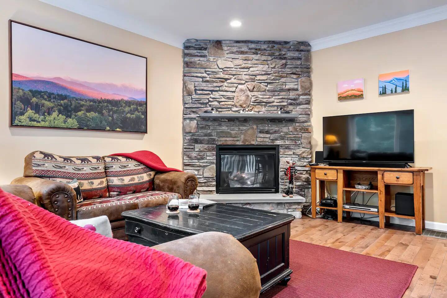 Experience a peaceful retreat in Lincoln, New Hampshire, the heart of the White Mountains! This pet-friendly home is located less than five minutes from Loon Mountain Resort. Start your morning with a coffee on the back deck, and end it hanging around the gas fireplace with all your friends & family. The home includes something for the whole family: master bedroom with an en-suite bathroom, bunk beds for the kids, and even a Wii video game console!