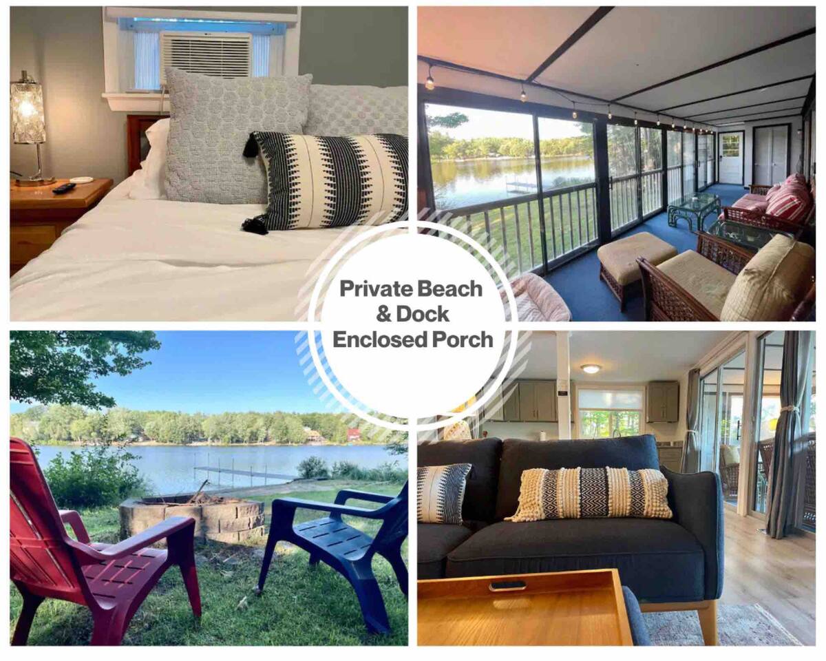 Come experience the beauty and tranquility of our private family lake house, On Locke, the perfect getaway spot for any season. *Summer: Private beach & dock, plus community beach with swing set & pavilion just steps away. *Fall: Stay warm with a cozy fire pit & access to nearby wildlife trails. *Winter: Ice fish, snowmobile, or ski with water front view & trailer parking. Ample space for trailers year-round to enjoy the water front view no matter the season.t home.