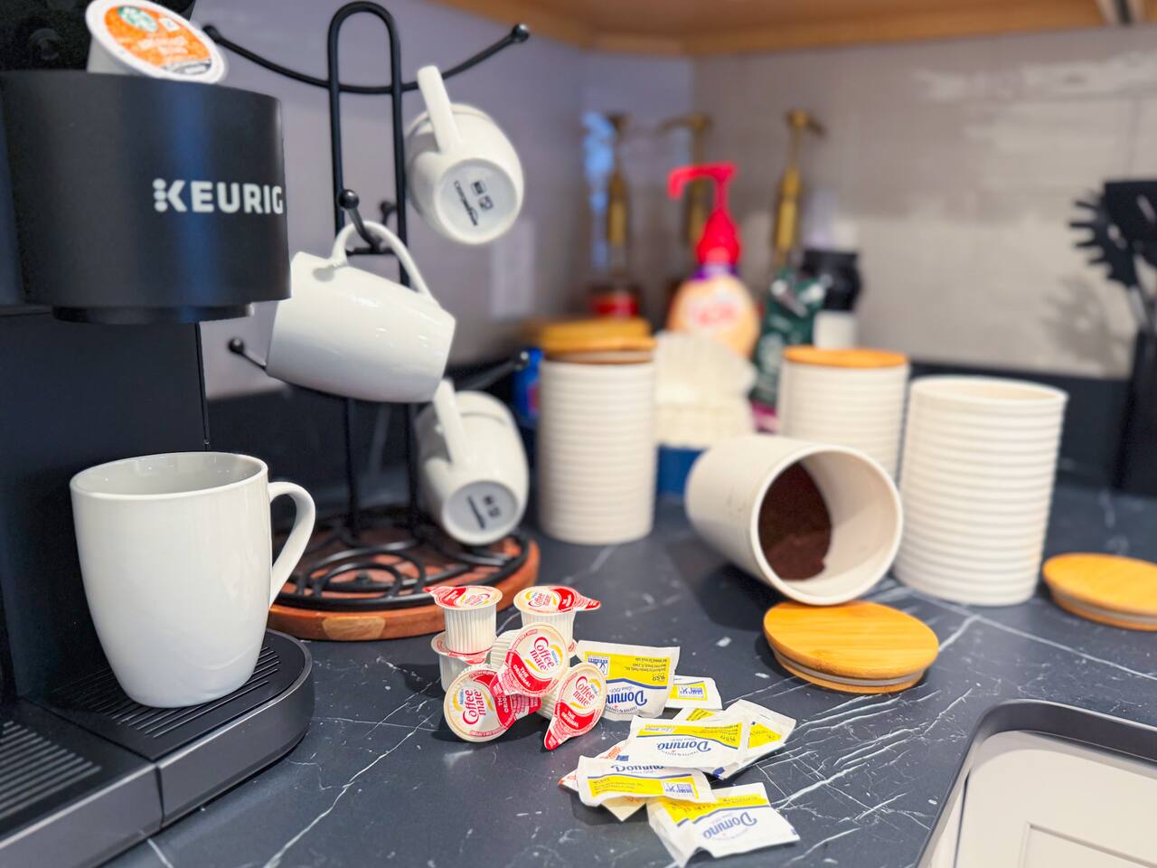 Starter Supplies 🧴: We provide sufficient trash bags 🗑️, paper towels 🧻, toilet paper 🚽, and other household essentials 🏠 designed to last about three days ⏳. For longer stays, guests are asked to replenish these items 🔄.