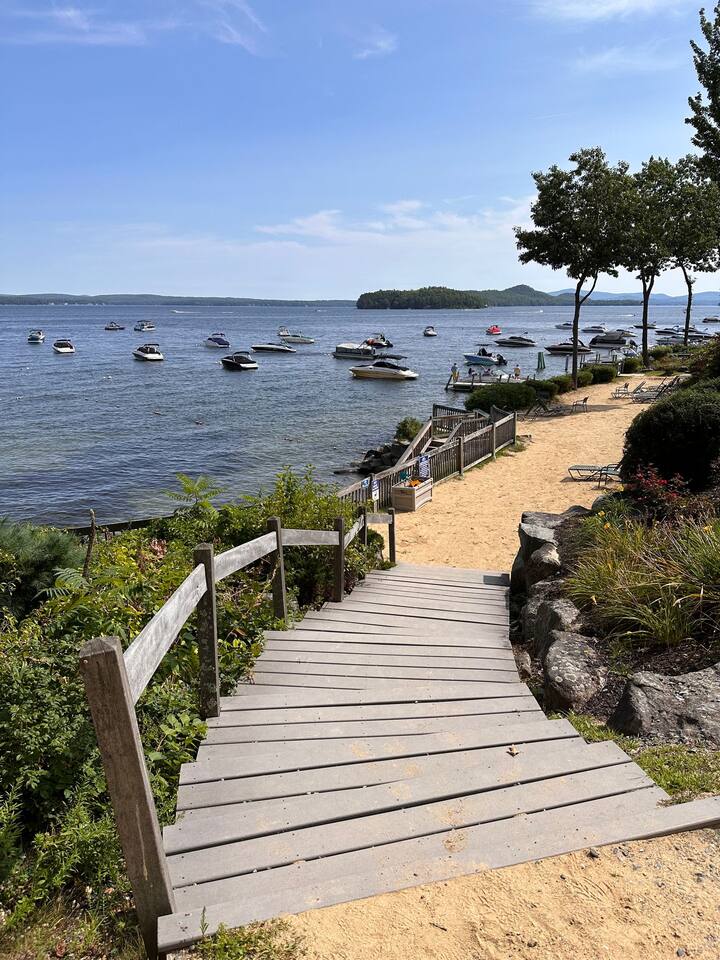 Welcome to our cozy Lake Winnipesaukee townhouse, offering stunning mountain views along with community lake access. Perfect for families or small groups, this getaway is nestled within a vibrant resort featuring a range of amenities like a pool, sports courts, a clubhouse, dock, beach and sun tanning deck for endless fun. Our home is minutes from skiing at Gunstock, concerts at BankNH Pavilion, Weirs Beach, shopping, restaurants and much more.