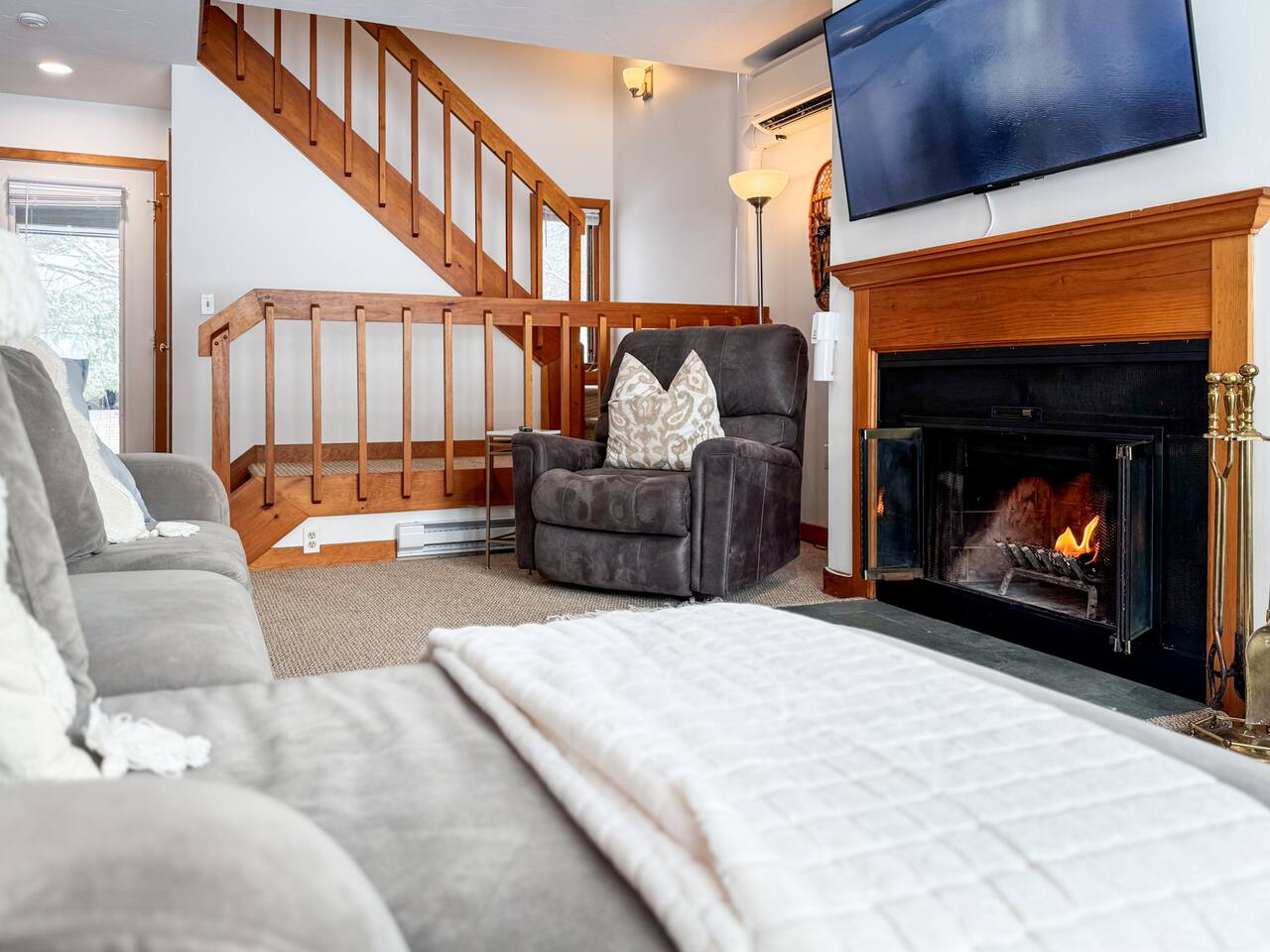This charming townhouse comfortably accommodates guests with: - Master Bedroom: QUEEN bed with cozy linens - Second Bedroom: Full TWIN bunk bed, perfect for kids or additional guests. - Living Area: Relax with the Roku TV and enjoy easy streaming access. - Full Kitchen: Equipped with everything you need to prepare meals during your stay. Enjoy climate comfort with 3 mini-split heat pumps throughout the home. The back porch/sunroom is perfect for morning coffee or evening relaxation. Our listing shows resort amenities and amenities within our home. Please be sure to ask any questions for clarification on what is private to the home and a shared amenity.