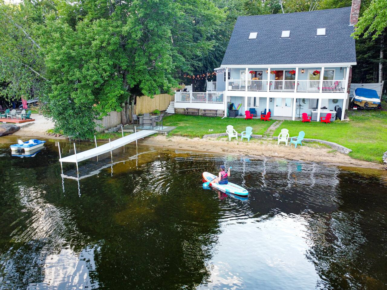 ποΈ Cozy and welcoming 2-bedroom house with an open loft as the 3rd sleeping area Comfortable living room with large windows overlooking the lake Fully equipped kitchen for all your cooking needs Spacious deck with seating and outdoor dining Modern amenities including WiFi and Smart TV π Lakefront Features Private dock for swimming, kayaking, or fishing Direct lake access just steps from the house Expansive deck for relaxing and dining with a view Stunning sunrise and sunset views over Baxter Lake π Location Located in a quiet lake community, yet just minutes from local shops, restaurants, and hiking trails. A short drive will take you to charming New Hampshire towns, scenic nature spots, and year-round attractions. β¨ Whether you're looking for a peaceful retreat, an adventurous lake escape, or a family getaway, this waterfront home has it all.