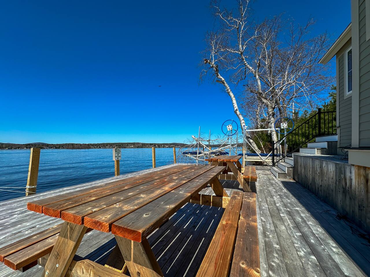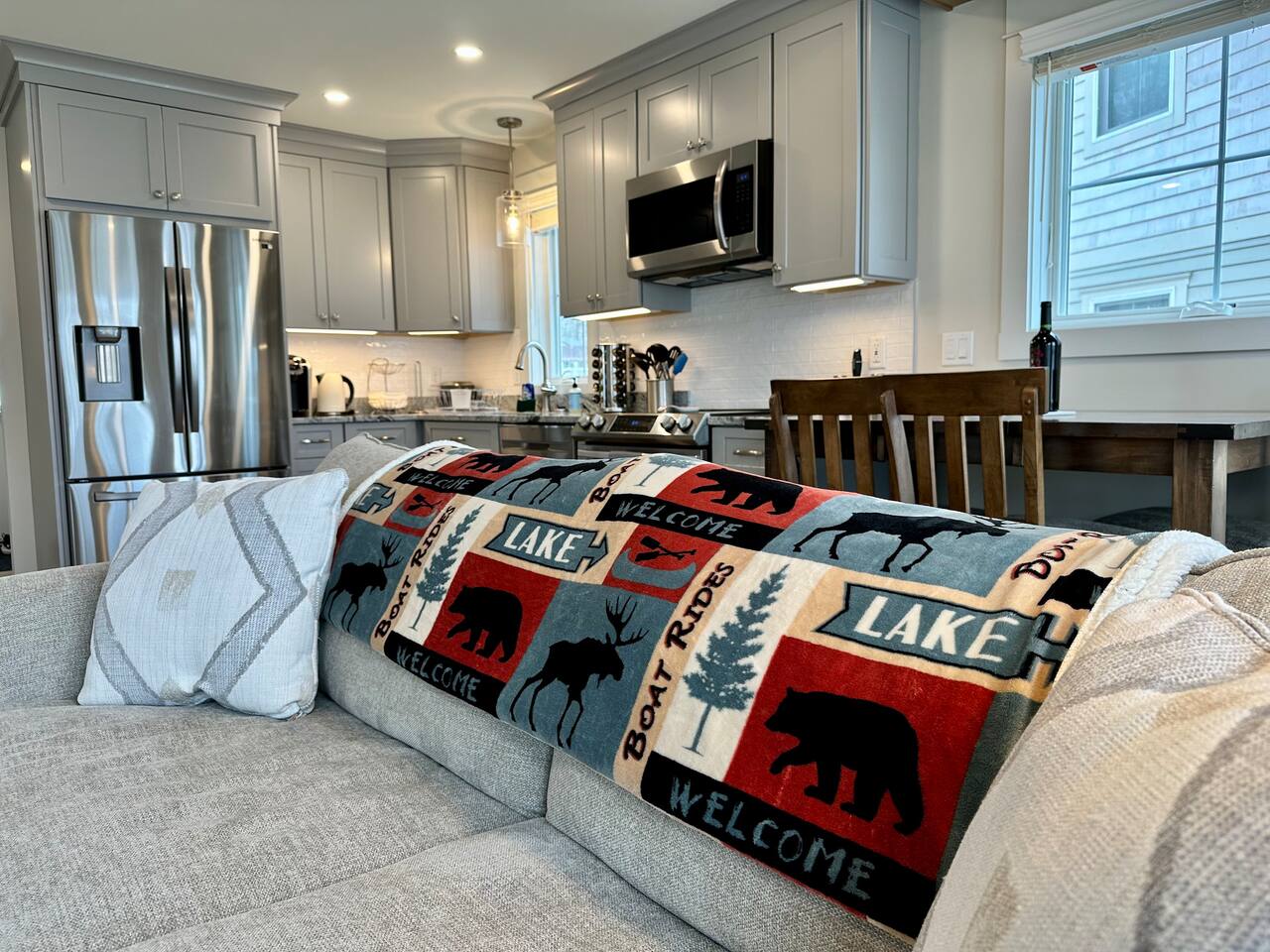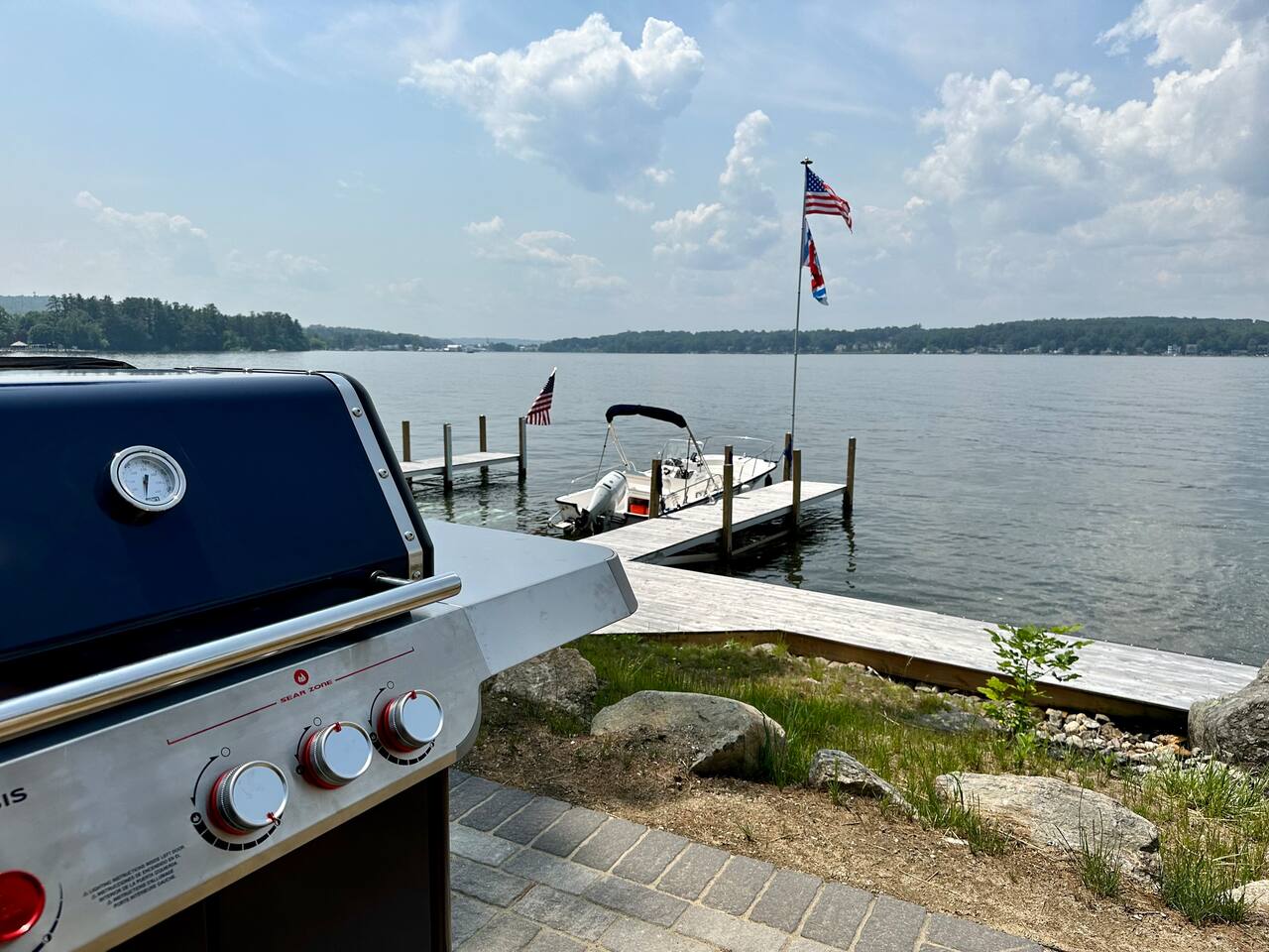 Welcome to your lakeside retreat on Lake Winnipesaukee in Laconia, New Hampshire! This stunning 2-bedroom, 2-bathroom house boasts breathtaking water views and is the perfect escape for your next vacation. As a brand new constructed home, this home features modern and luxurious finishes throughout. Step inside to discover an open-concept living area with ample natural light and stylish furnishings. The living room invites you to unwind with a cozy sofa and a smart TV, ideal for movie nights after a day on the lake. The fully equipped kitchen is a chef's dream, complete with stainless steel appliances, granite countertops, and all the cookware you need to prepare delicious meals. Enjoy your culinary creations at the quaint dining table, or take advantage of the outdoor patio for al fresco dining with lake views. After a day of exploring, retreat to the inviting bedrooms. The master bedroom boasts a comfortable queen-sized bed and second floor views of the lake. The second bedroom features another queen-sized bed, ensuring a restful night's sleep for all guests. Both bathrooms provide a sleek walk-in shower with spa grade shampoo products for convenience and comfort. Step outside onto the patio and take in the fresh air while admiring the serene lake vistas. The private dock offers easy access to the water, perfect for swimming, fishing, or launching kayaks. Fire up the shared BBQ grill for a lakeside cookout with family and friends. Explore the surrounding area with ease—this home is ideally located near Laconia's attractions, including hiking trails, golf courses, and charming downtown shops and restaurants. Whether you're seeking a peaceful getaway or an adventure-filled vacation, this Lake Winnipesaukee retreat promises an unforgettable experience. Book your stay today and start planning your lakeside escape! Located just minutes from Laconia’s top attractions, this retreat also offers easy access to some of New Hampshire’s best ski destinations — perfect for both summer and winter getaways: Gunstock Mountain Resort – 15 minutes Ragged Mountain – 45 minutes Cannon Mountain – 1 hour Loon Mountain – 1 hour Wildcat Mountain – 1 hour 45 minutes Okemo Mountain – 2 hours Inside, you’ll find thoughtfully added artwork and elegant décor that make this home warm and inviting. Every detail is designed for comfort — from the open-concept living space to the serene bedrooms overlooking the lake.