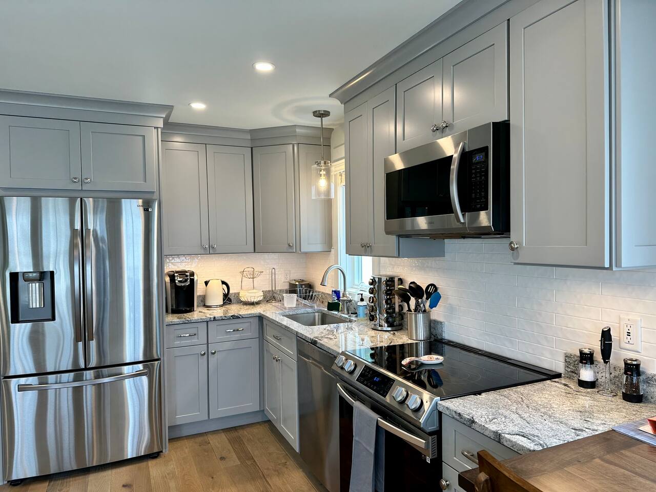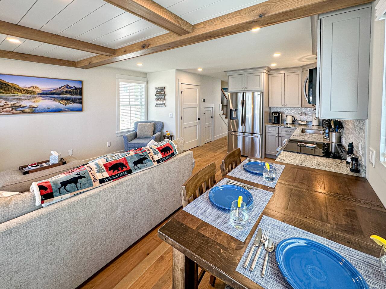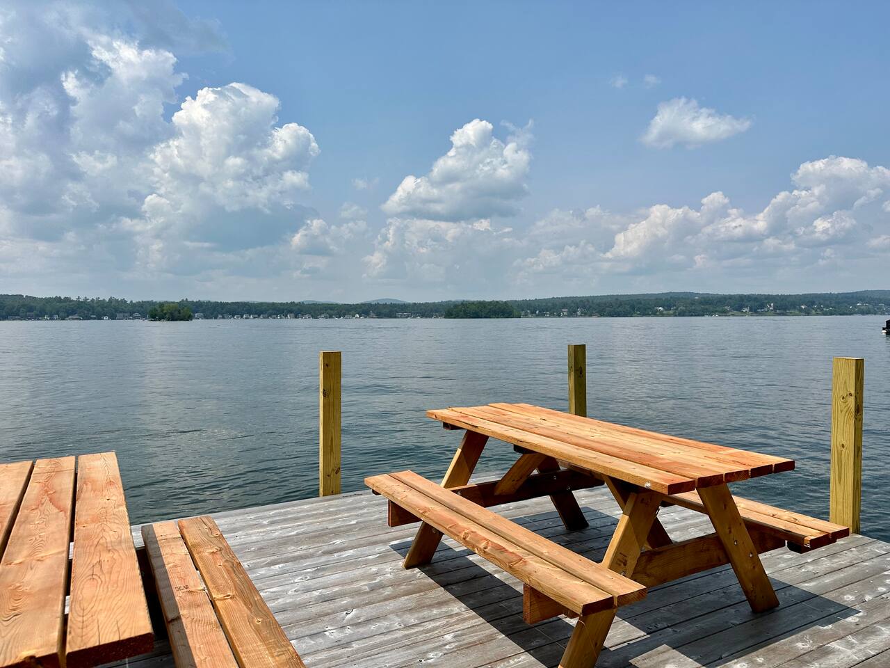 Welcome to your lakeside retreat on Lake Winnipesaukee in Laconia, New Hampshire! This stunning 2-bedroom, 2-bathroom house boasts breathtaking water views and is the perfect escape for your next vacation. As a brand new constructed home, this home features modern and luxurious finishes throughout. Step inside to discover an open-concept living area with ample natural light and stylish furnishings. The living room invites you to unwind with a cozy sofa and a smart TV, ideal for movie nights after a day on the lake. The fully equipped kitchen is a chef's dream, complete with stainless steel appliances, granite countertops, and all the cookware you need to prepare delicious meals. Enjoy your culinary creations at the quaint dining table, or take advantage of the outdoor patio for al fresco dining with lake views. After a day of exploring, retreat to the inviting bedrooms. The master bedroom boasts a comfortable queen-sized bed and second floor views of the lake. The second bedroom features another queen-sized bed, ensuring a restful night's sleep for all guests. Both bathrooms provide a sleek walk-in shower with spa grade shampoo products for convenience and comfort. Step outside onto the patio and take in the fresh air while admiring the serene lake vistas. The private dock offers easy access to the water, perfect for swimming, fishing, or launching kayaks. Fire up the shared BBQ grill for a lakeside cookout with family and friends. Explore the surrounding area with ease—this home is ideally located near Laconia's attractions, including hiking trails, golf courses, and charming downtown shops and restaurants. Whether you're seeking a peaceful getaway or an adventure-filled vacation, this Lake Winnipesaukee retreat promises an unforgettable experience. Book your stay today and start planning your lakeside escape! Located just minutes from Laconia’s top attractions, this retreat also offers easy access to some of New Hampshire’s best ski destinations — perfect for both summer and winter getaways: Gunstock Mountain Resort – 15 minutes Ragged Mountain – 45 minutes Cannon Mountain – 1 hour Loon Mountain – 1 hour Wildcat Mountain – 1 hour 45 minutes Okemo Mountain – 2 hours Inside, you’ll find thoughtfully added artwork and elegant décor that make this home warm and inviting. Every detail is designed for comfort — from the open-concept living space to the serene bedrooms overlooking the lake.
