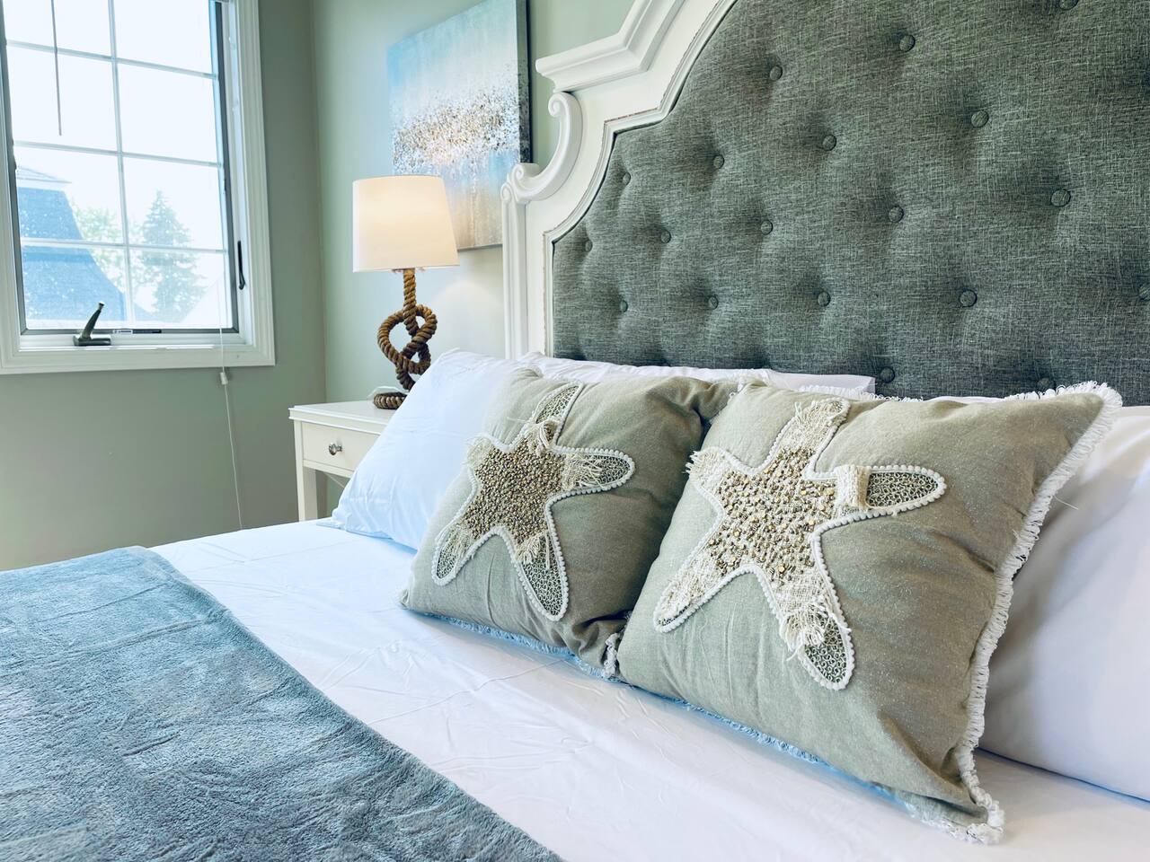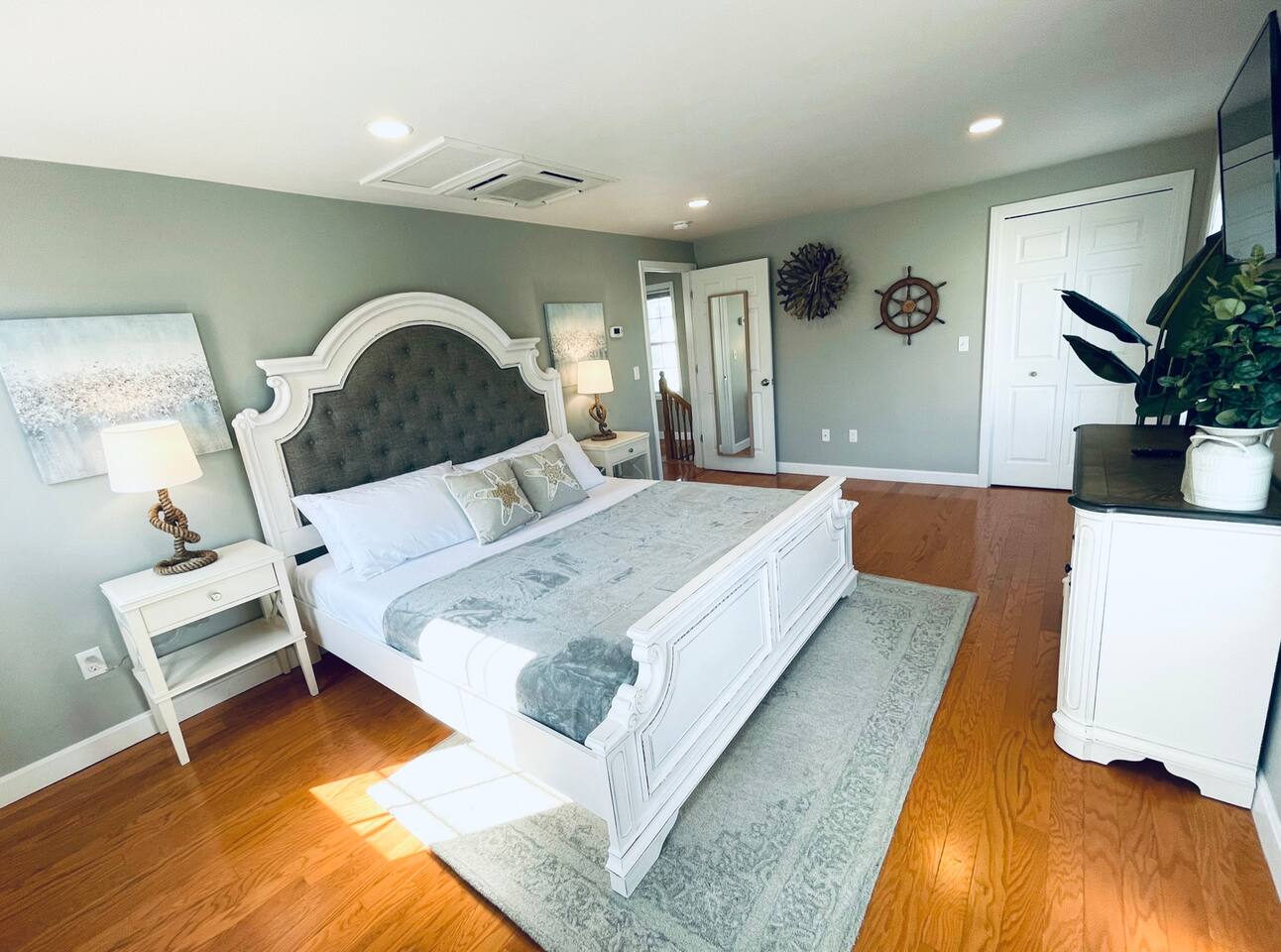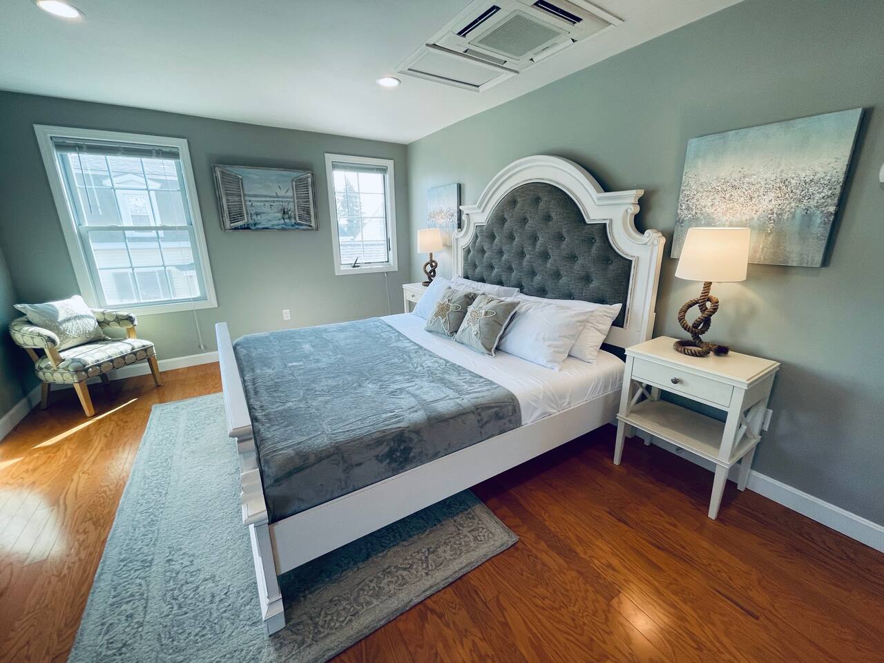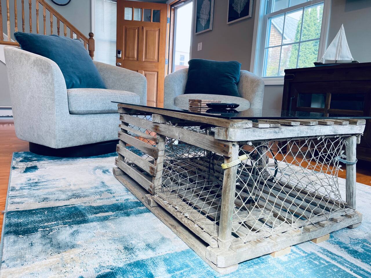 Step inside and feel transported to the Maine Seacoast 🌊🦀. The rich blue and gray tones with weathered wood 🪵 bring the harbor right to your living room 🛋️. Open the windows 🌬️, breathe in the salty sea air, and you might even feel like you’re on a lobster boat 🦞! Sip your morning coffee ☕ or evening cocktail 🍹 on the farmers porch 🌿 while watching the sun set 🌇. Relax inside by the lobster trap table 🦞 or curl up with a good book 📖 in the cozy living room. Sleeping Arrangements 🛏️ - Bedroom 1: King bed 👑 - Bedroom 2: Queen bed 👸 - Living Room (1st Floor): Additional mattress stored in the cubby under the staircase 🛏️ Total: 3 Beds 🛏️