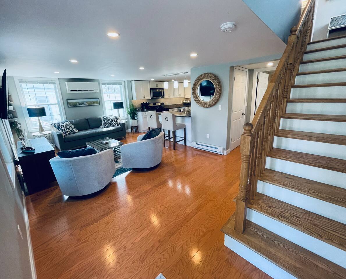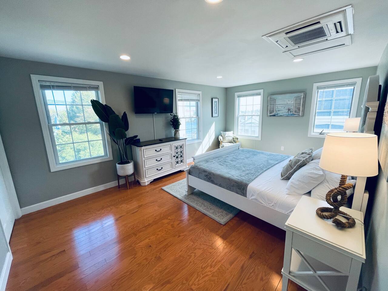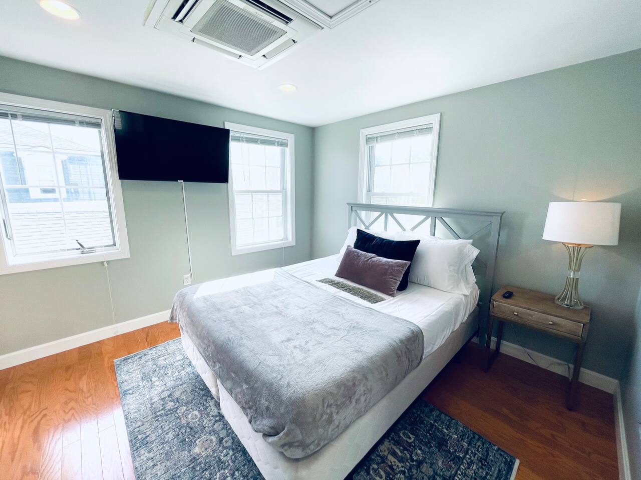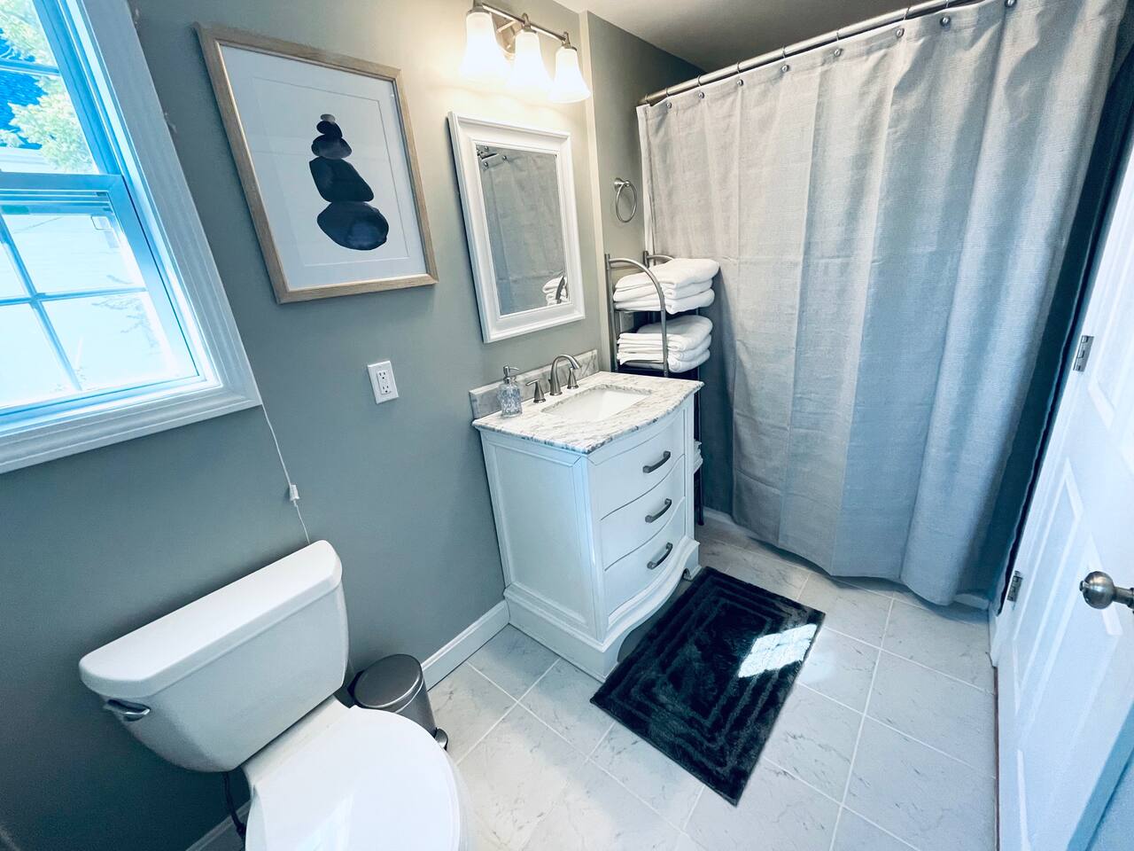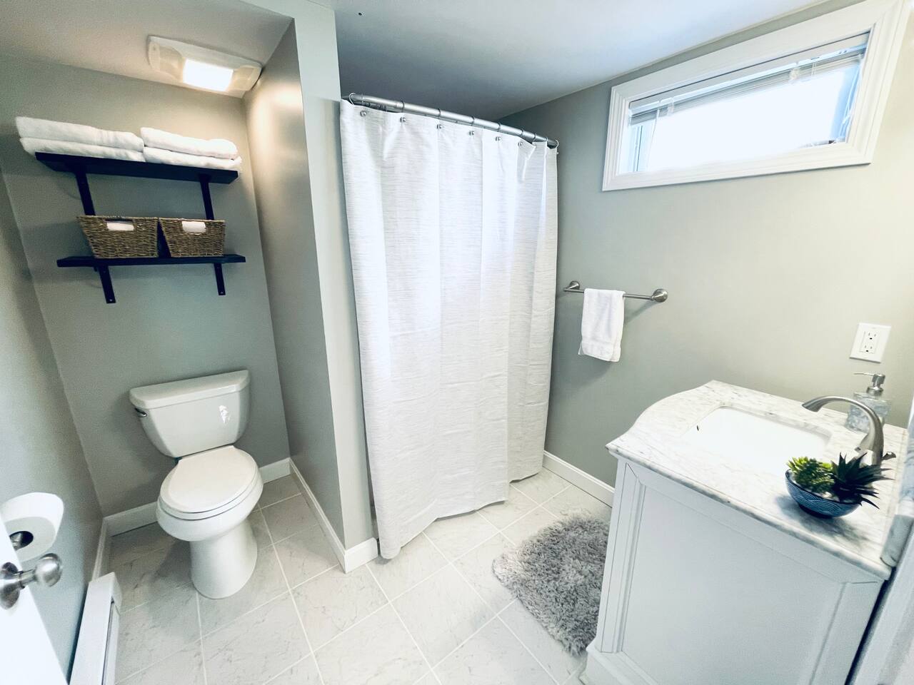 Step inside and feel transported to the Maine Seacoast 🌊🦀. The rich blue and gray tones with weathered wood 🪵 bring the harbor right to your living room 🛋️. Open the windows 🌬️, breathe in the salty sea air, and you might even feel like you’re on a lobster boat 🦞! Sip your morning coffee ☕ or evening cocktail 🍹 on the farmers porch 🌿 while watching the sun set 🌇. Relax inside by the lobster trap table 🦞 or curl up with a good book 📖 in the cozy living room. Sleeping Arrangements 🛏️ - Bedroom 1: King bed 👑 - Bedroom 2: Queen bed 👸 - Living Room (1st Floor): Additional mattress stored in the cubby under the staircase 🛏️ Total: 3 Beds 🛏️