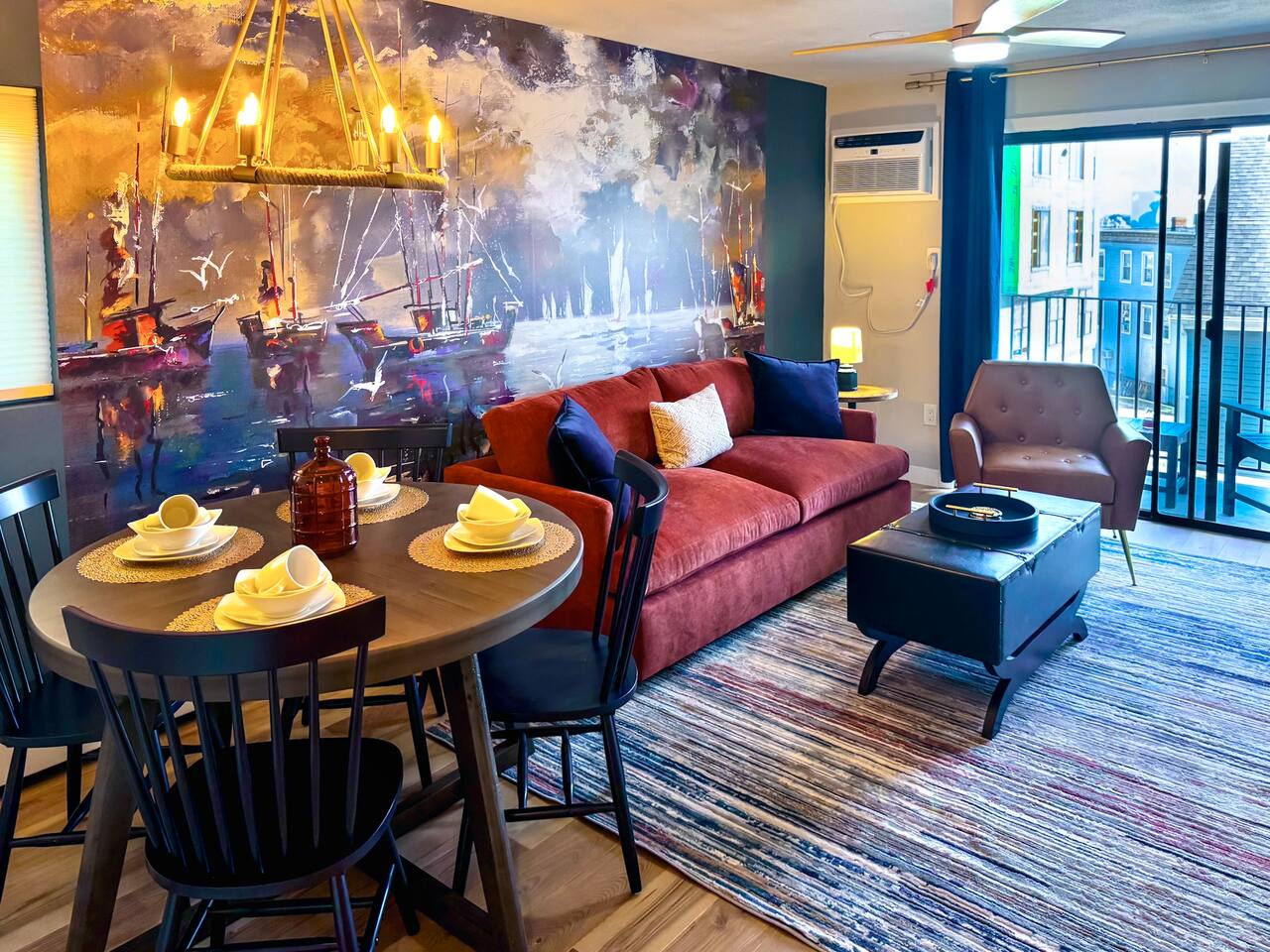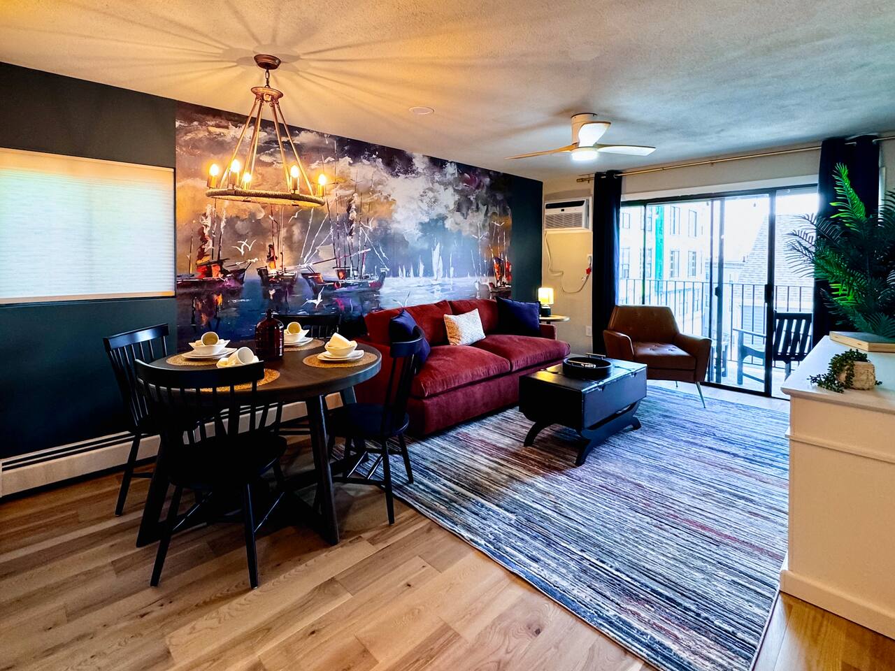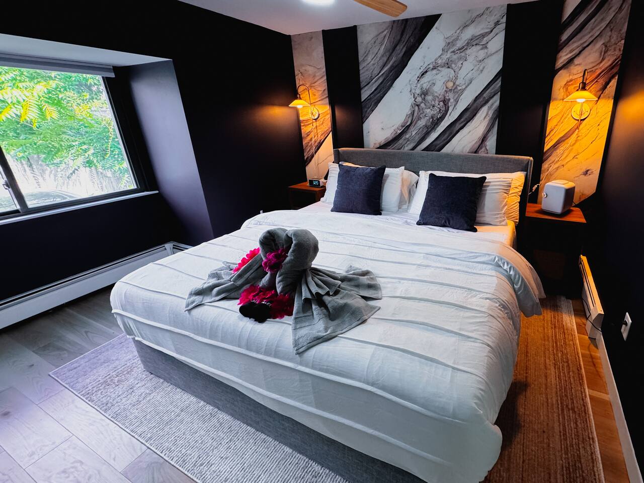 Luxurious apartment perfect for traveling professionals and couples. Enjoy modern amenities including an electric fireplace, AC, plush linens, and a private balcony. The custom desk with a wireless monitor is perfect for work or study. Located central to restaurants, walking distance to the train station, and close to Salem. Free off-street parking included. Ideal for a relaxing getaway or business stay, offering comfort, style, and convenience. Book your perfect retreat today!
