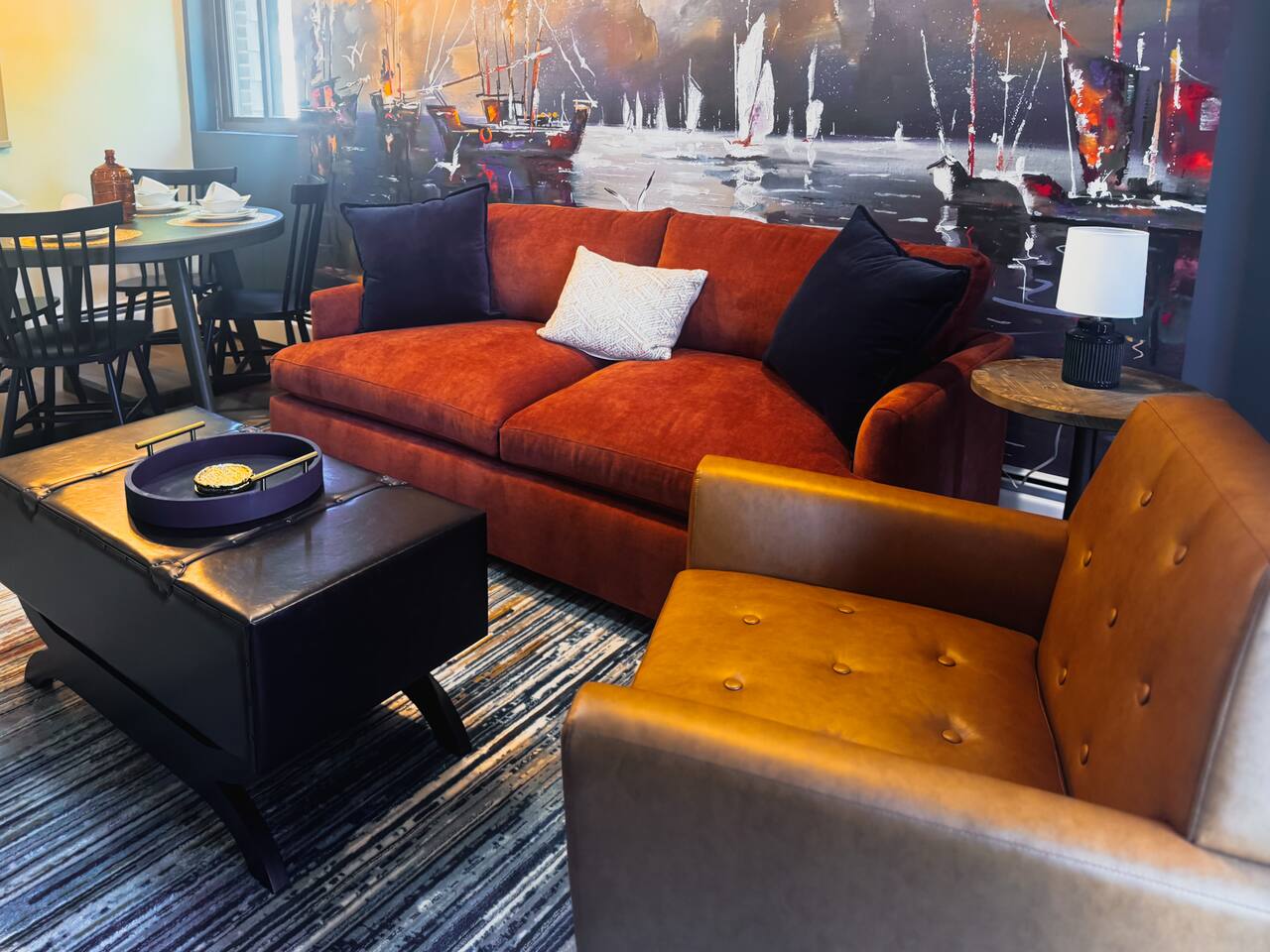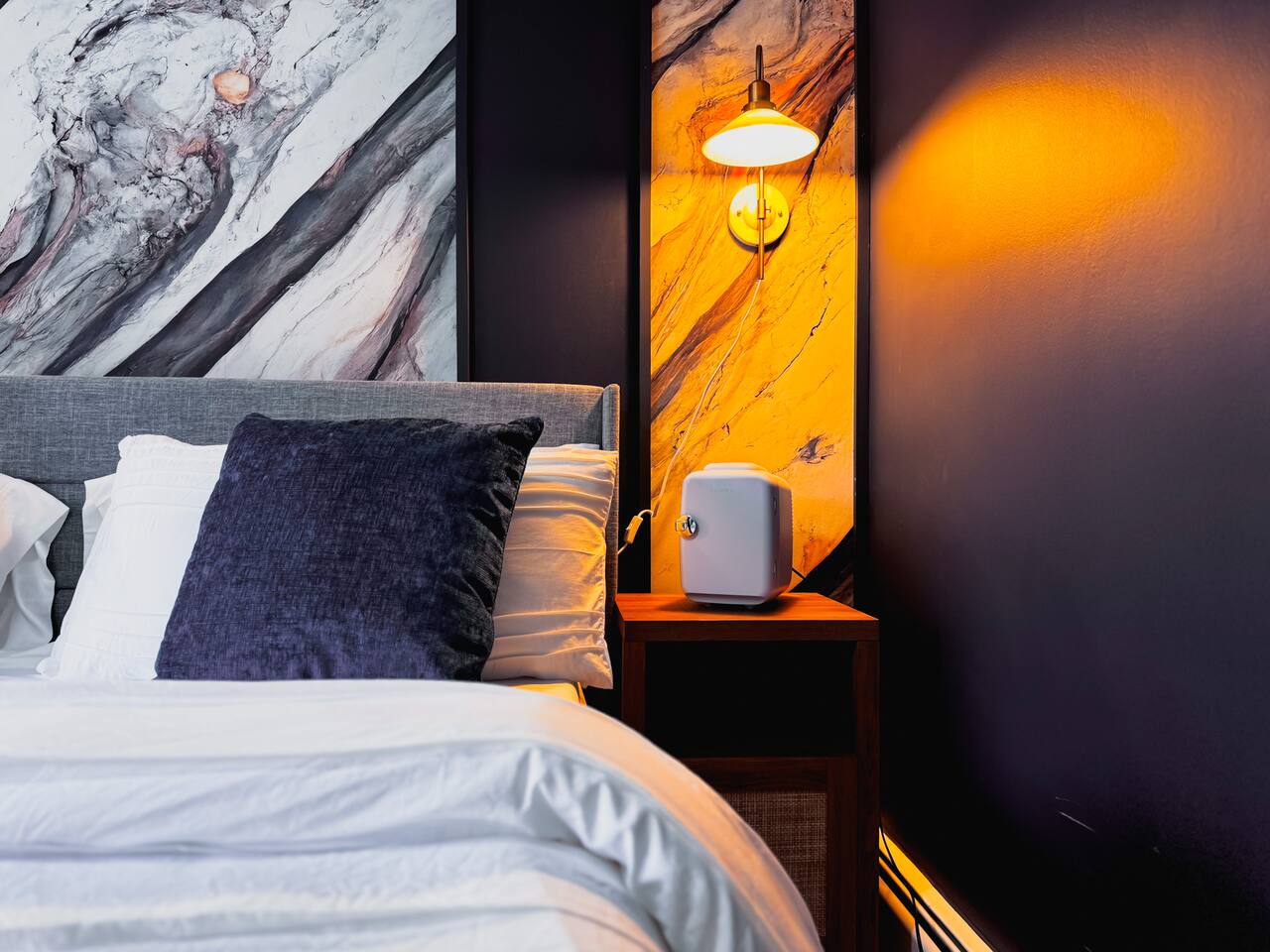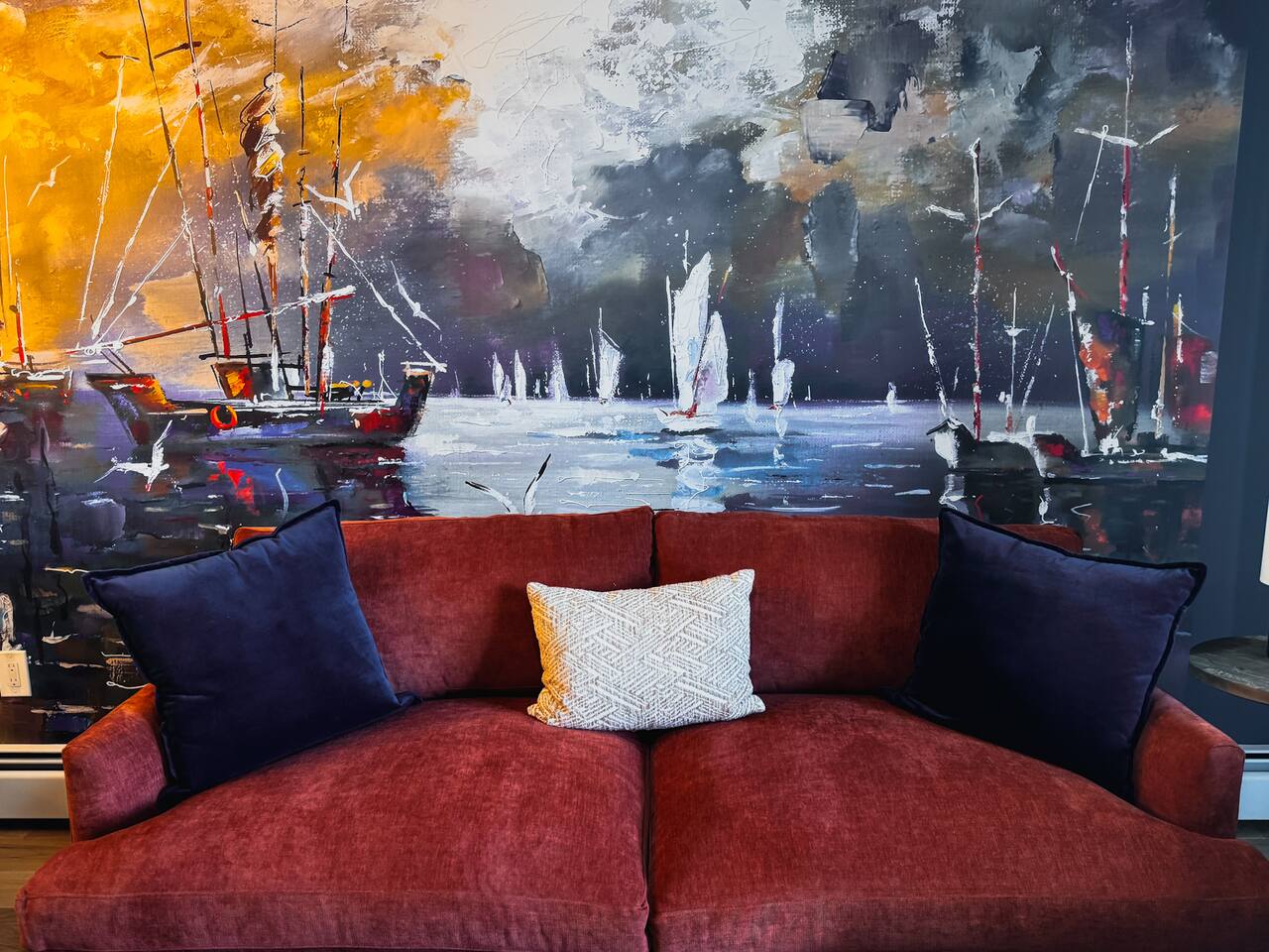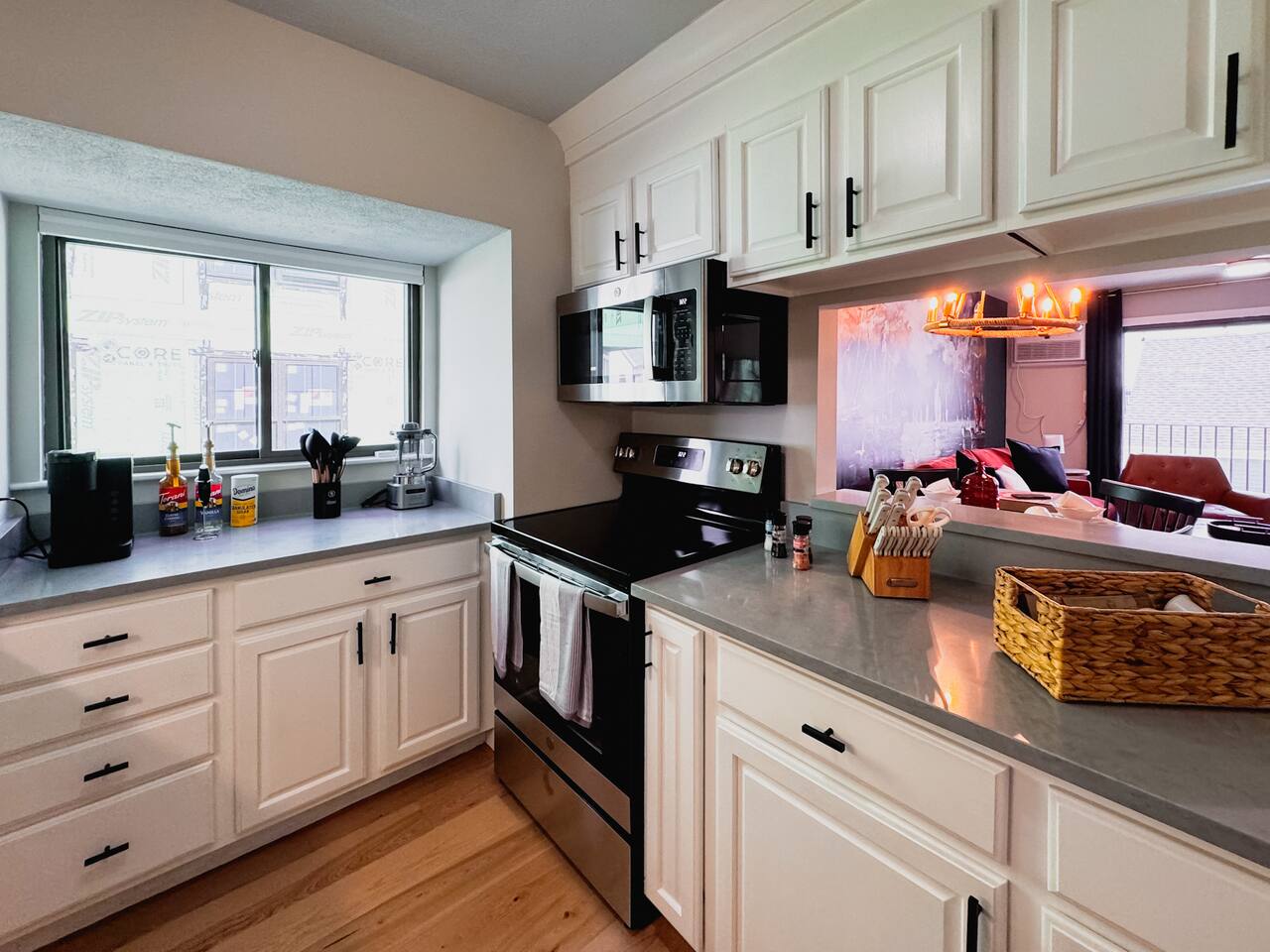 Luxurious apartment perfect for traveling professionals and couples. Enjoy modern amenities including an electric fireplace, AC, plush linens, and a private balcony. The custom desk with a wireless monitor is perfect for work or study. Located central to restaurants, walking distance to the train station, and close to Salem. Free off-street parking included. Ideal for a relaxing getaway or business stay, offering comfort, style, and convenience. Book your perfect retreat today!